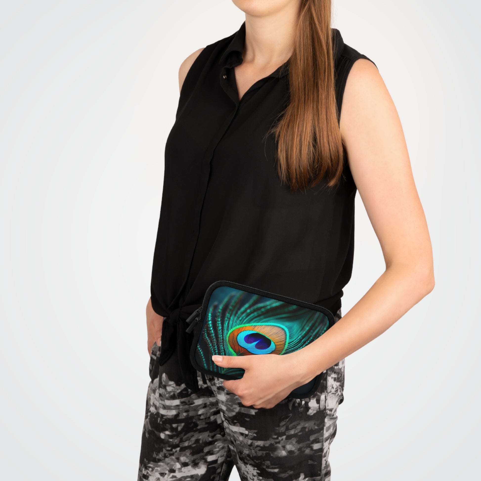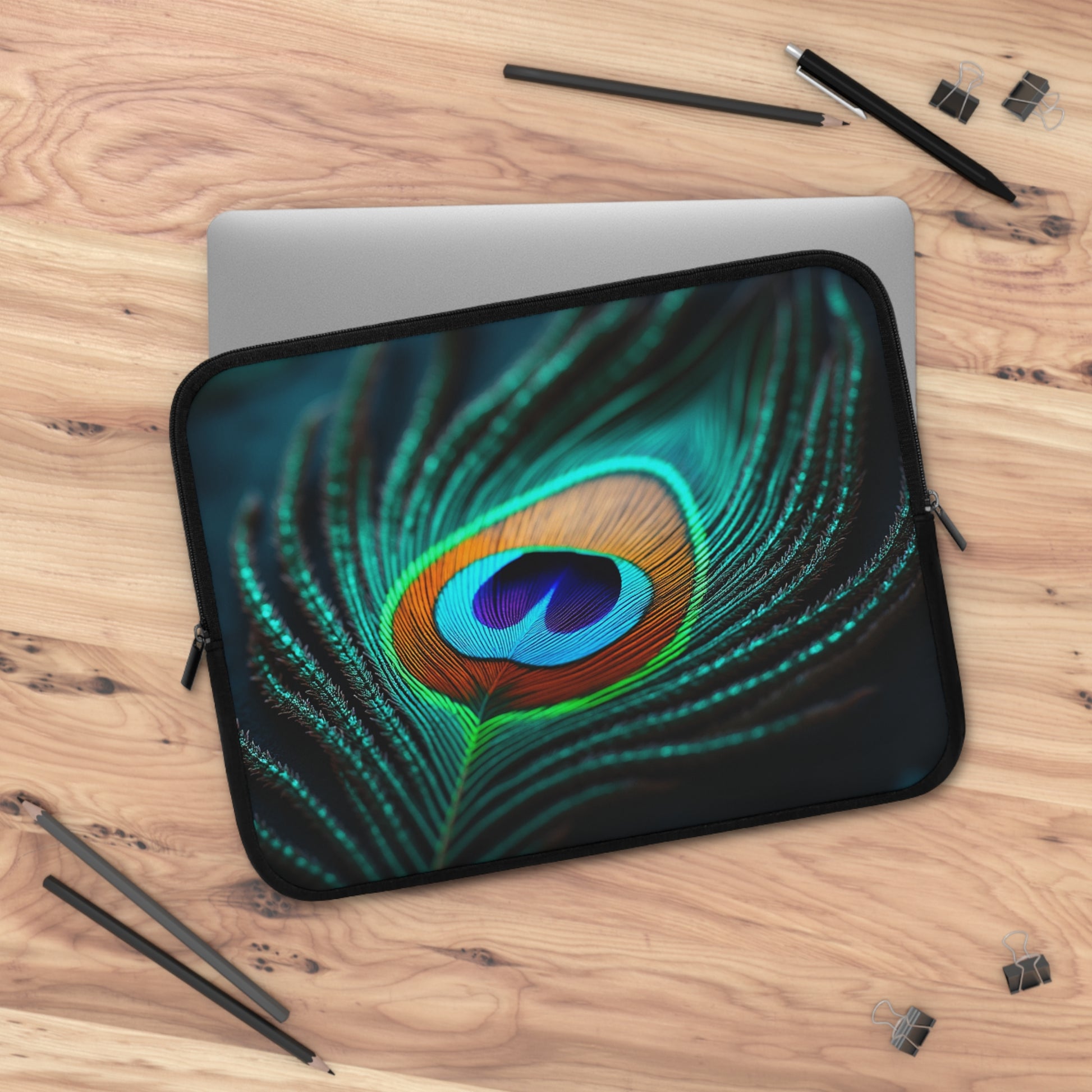 Tropical Laptop Sleeve, 5 Sizes - Perfect for Rainforest Lovers & Students / Peacock Eye Feather, Turquoise