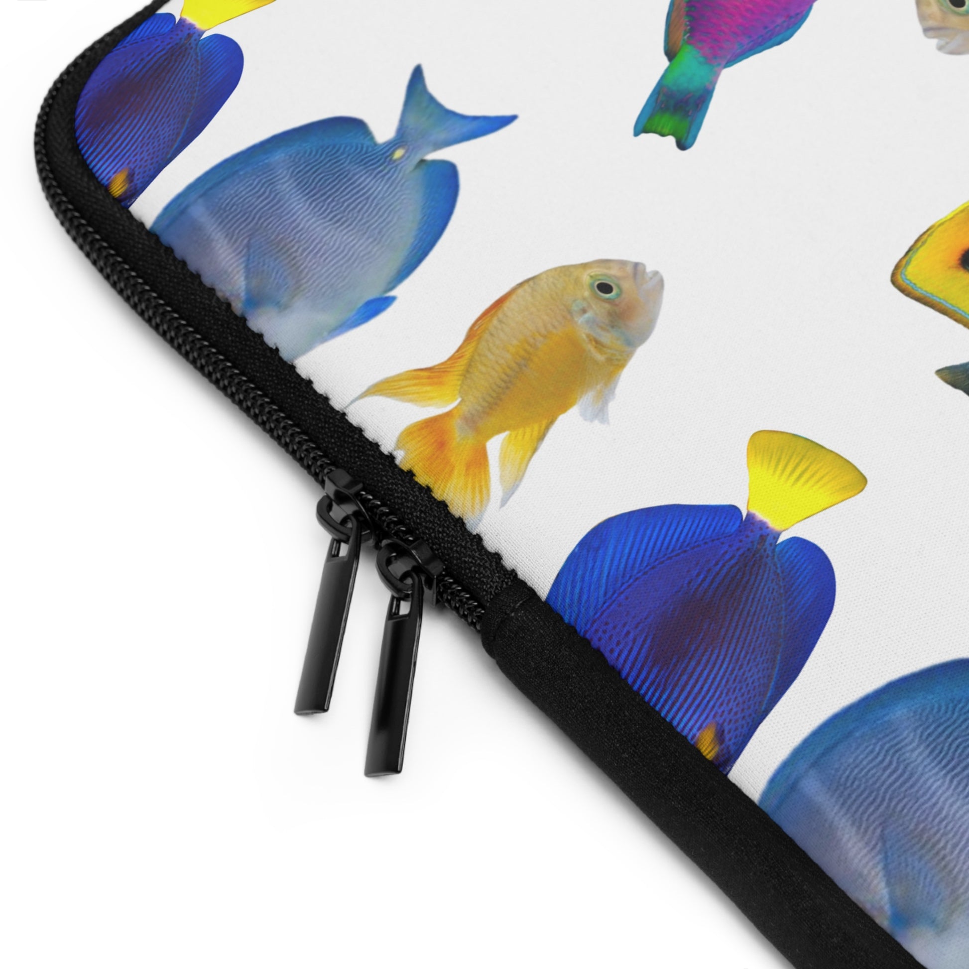 Tropical Laptop Sleeve, 5 Sizes - Perfect for Beach Lovers & Students / School of Fish, White