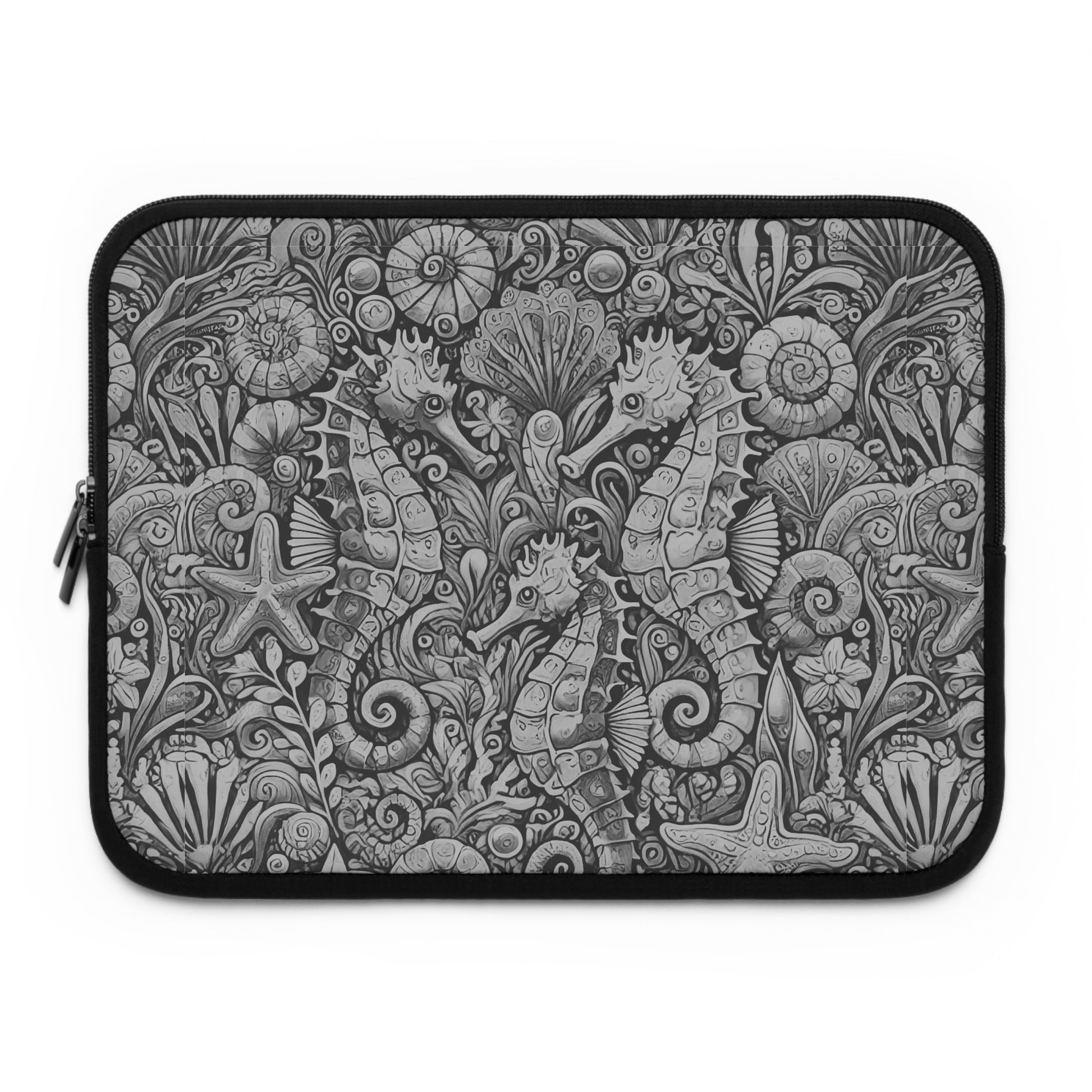 Tropical Laptop Sleeve, 5 Sizes - Perfect for Beach Lovers & Students / Seahorses, Noir
