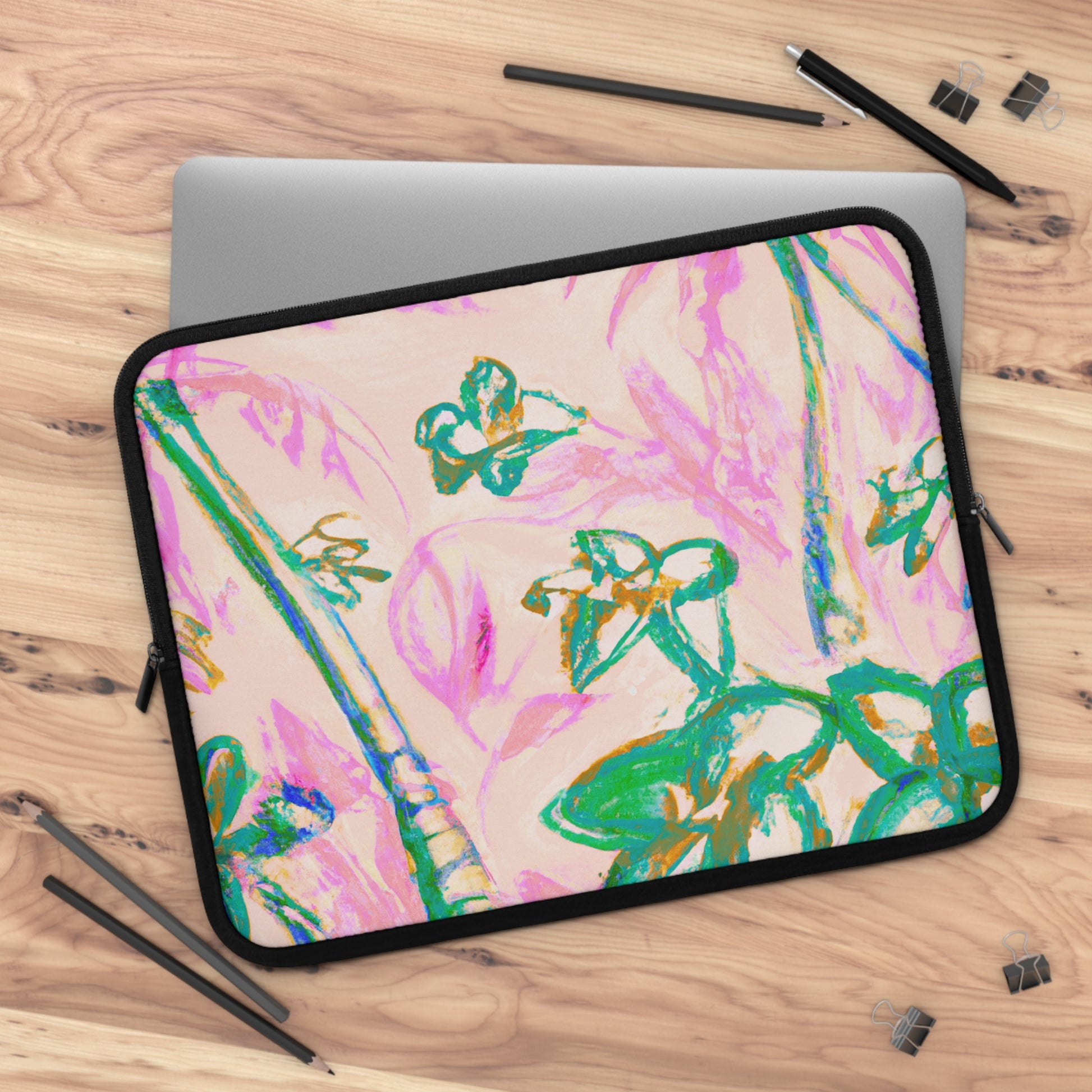 Introducing our vibrant Laptop Sleeve, designed for those who love to blend practicality with personal style. Design is stylized palm trees and flowers! This eye-catching sleeve brings a touch of tropical serenity to your everyday tech gear, making it a perfect companion for students, remote workers, and anyone on the go. Its lightweight and water-resistant features ensure that your laptop stays protected from dust and minor bumps without sacrificing portability.