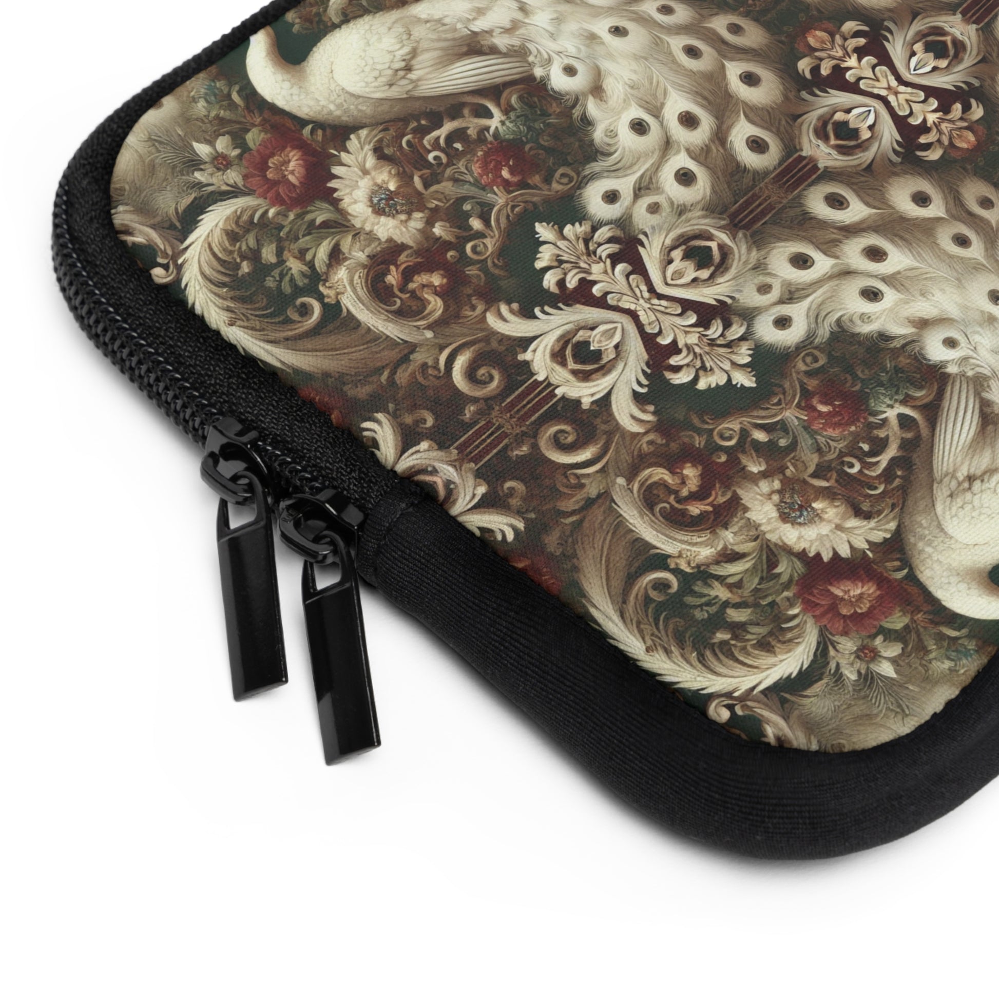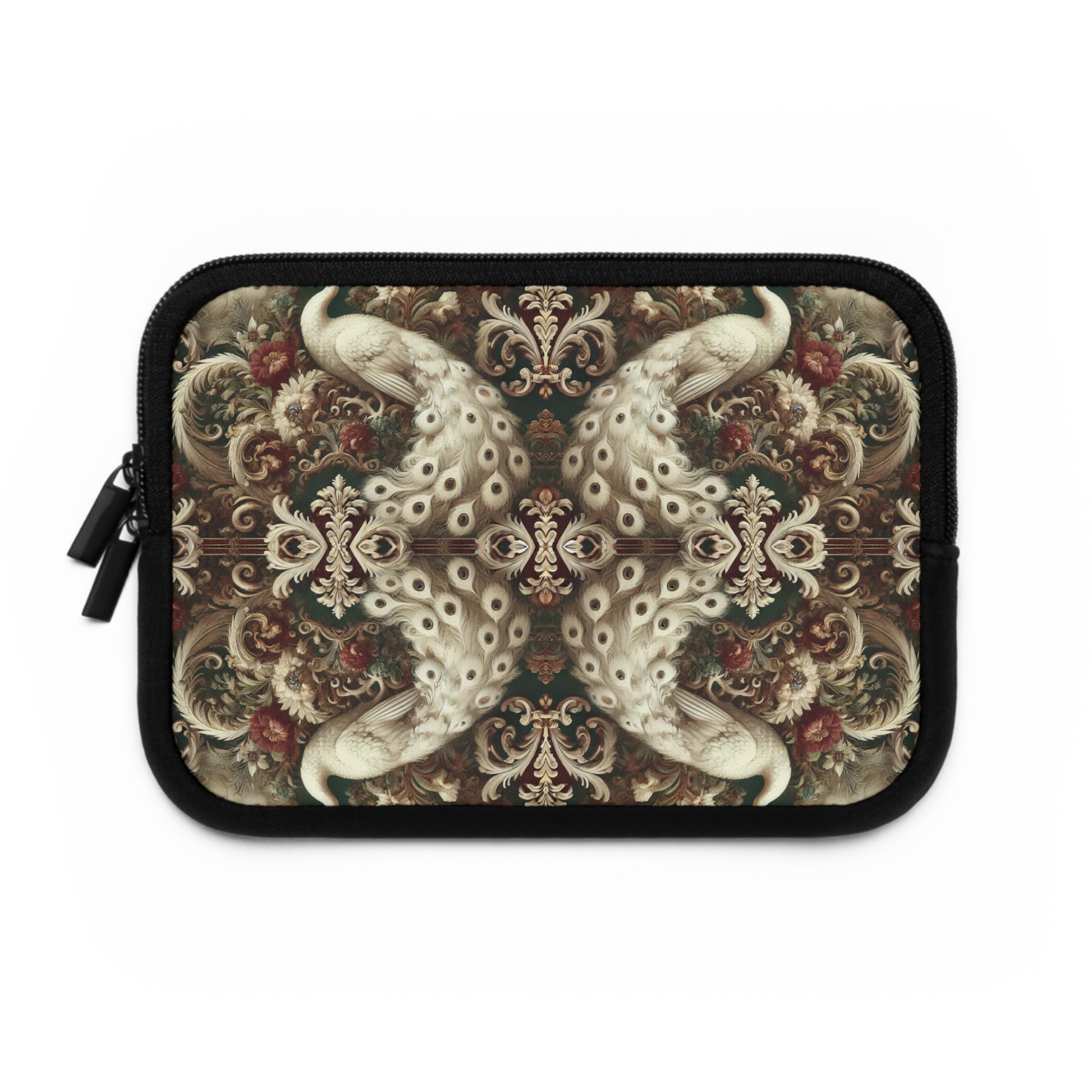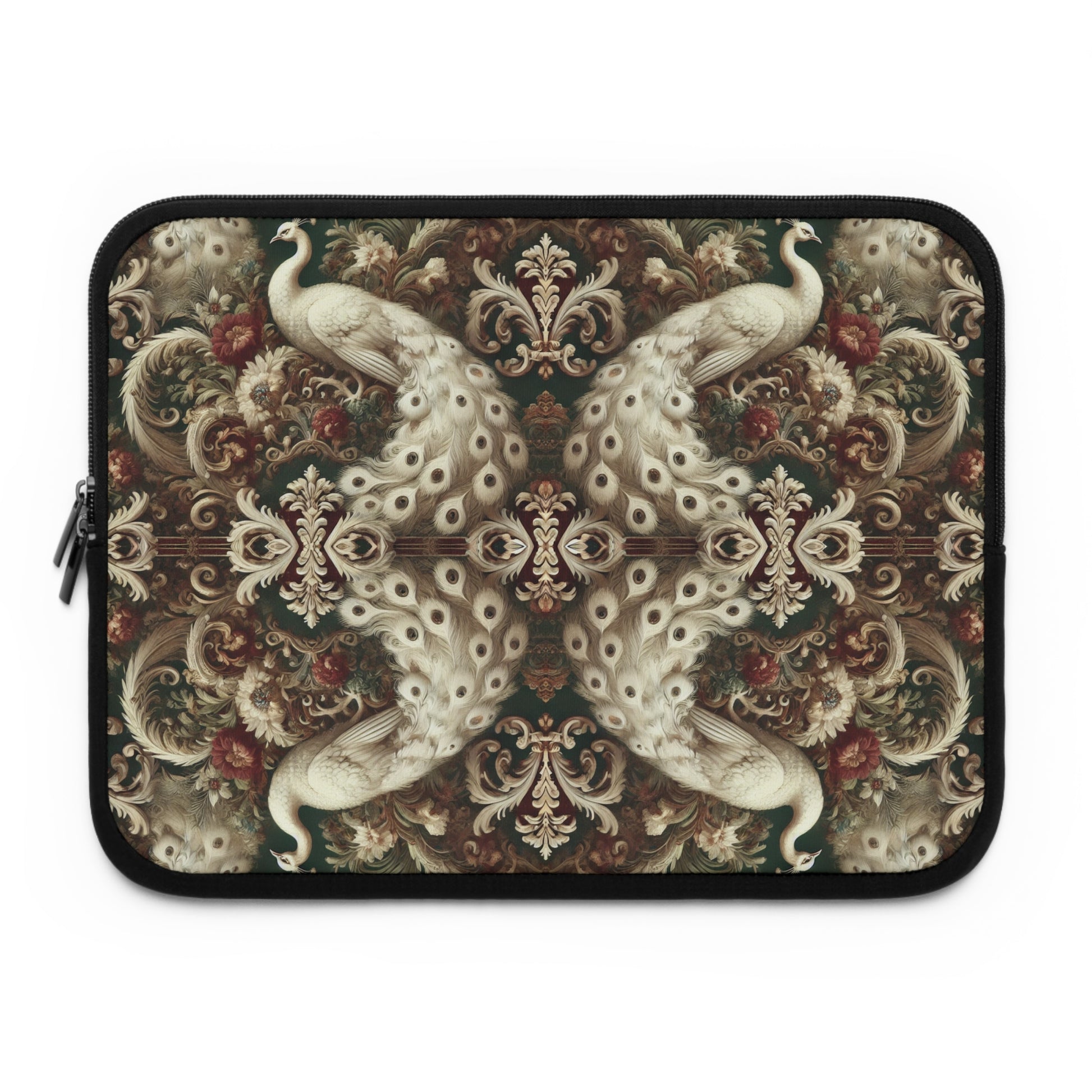 Tropical Laptop Sleeve, 5 Sizes - Perfect for Rainforest Lovers & Students / Kaleido White Peacocks
