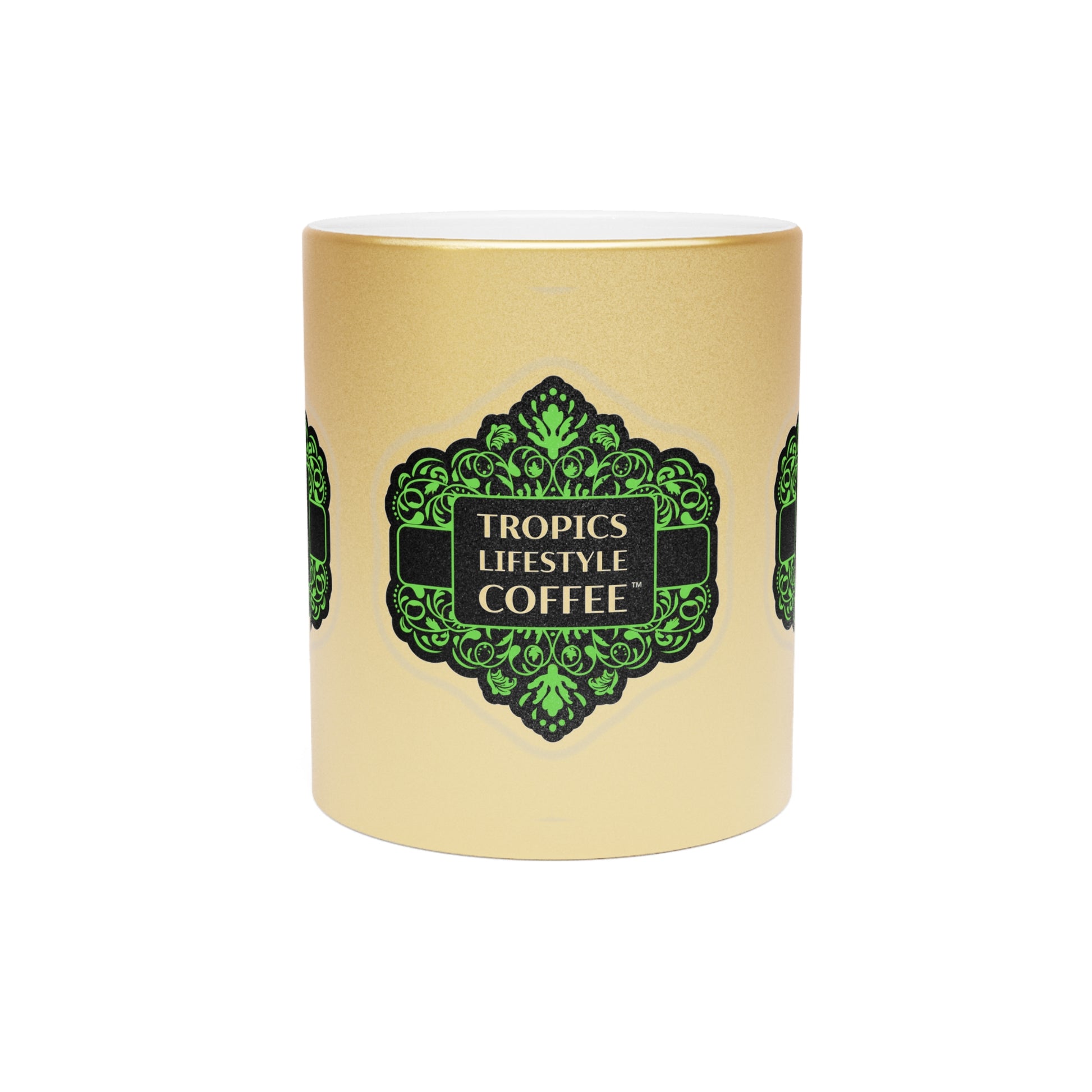 Elevate your sipping experience with this stunning Metallic Mug featuring our Tropics Lifestyle Coffee logo, celebrating living the Island Life anywhere on Earth with great-tasting Speciality Grade coffee. Available in captivating Gold or Silver, this mug showcases a luxurious metallic coating that adds a touch of elegance to your daily routine. Perfect for coffee, tea, or any beverage of your choice, it exudes a warm, inviting vibe that enhances your morning rituals. Whether you're enjoying a quiet moment at home or sharing a laugh with friends, this mug makes every sip feel special. Ideal for coffee lovers, tea enthusiasts, or anyone who appreciates fine design, it makes a thoughtful gift for birthdays, holidays, or just because. Celebrate your love for beverages with this stylish addition to your kitchenware!