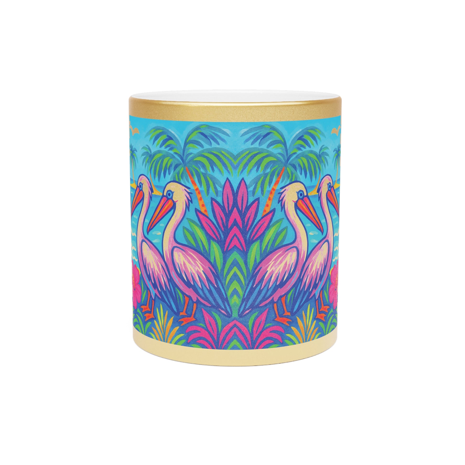 Tropical Metallic Mug, Gold or Silver: Beach Pelicans