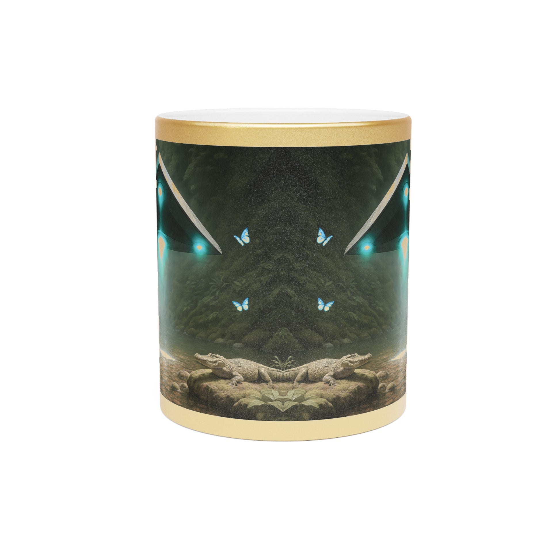 Tropical Metallic Mug, Gold or Silver: UFO & Waterfall