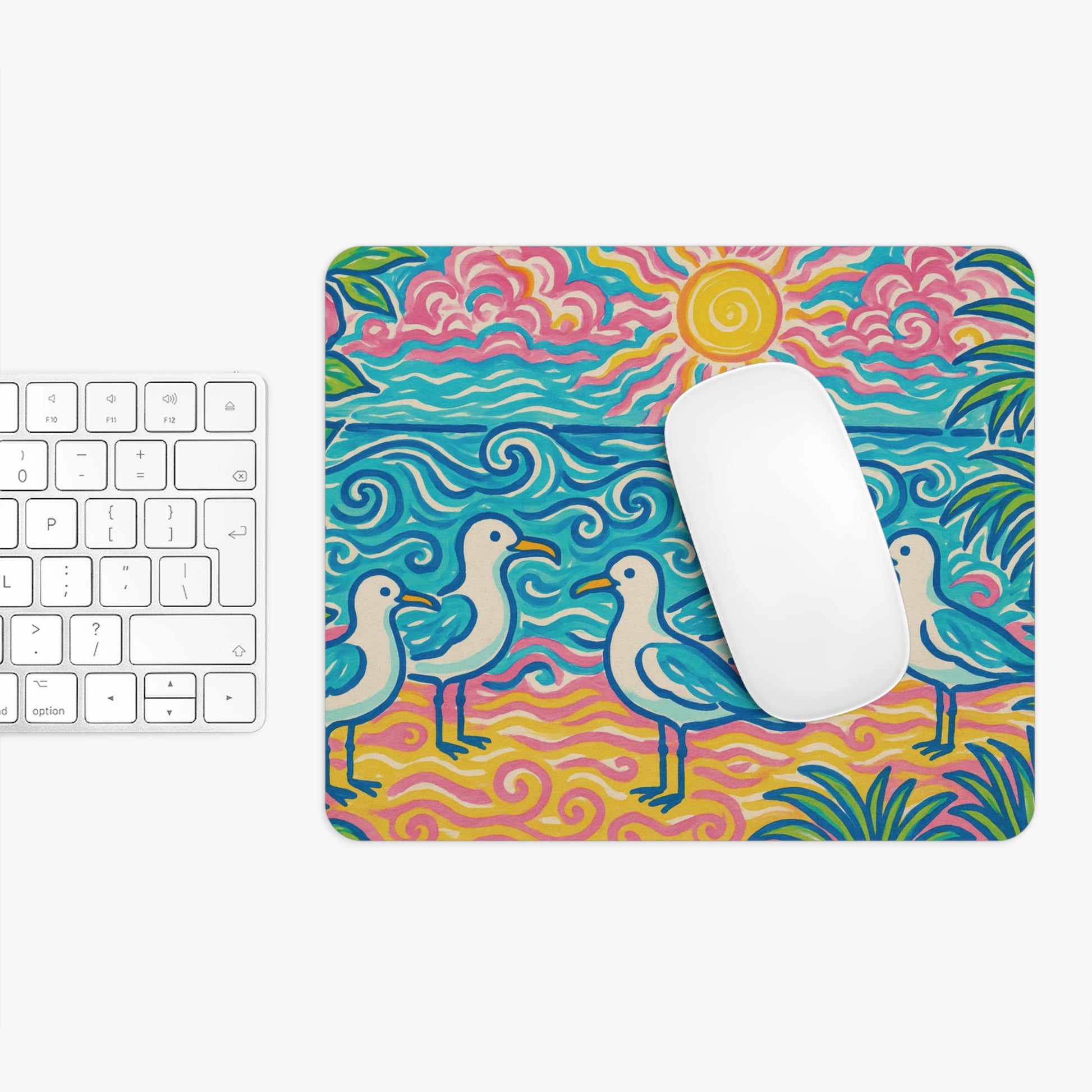 Brighten up your workspace with this vibrant mouse pad that blends functionality with artistry. The beach seagulls design creates a lively atmosphere, making every day at your desk feel refreshing and inspired. Ideal for students, professionals, and anyone who spends time on a computer, this mouse pad is a perfect addition to your home office or study area. It's especially great for beach lovers and nature enthusiasts. Whether it's for a housewarming gift, a birthday, or a simple treat for yourself, this mouse pad is sure to delight on any occasion.