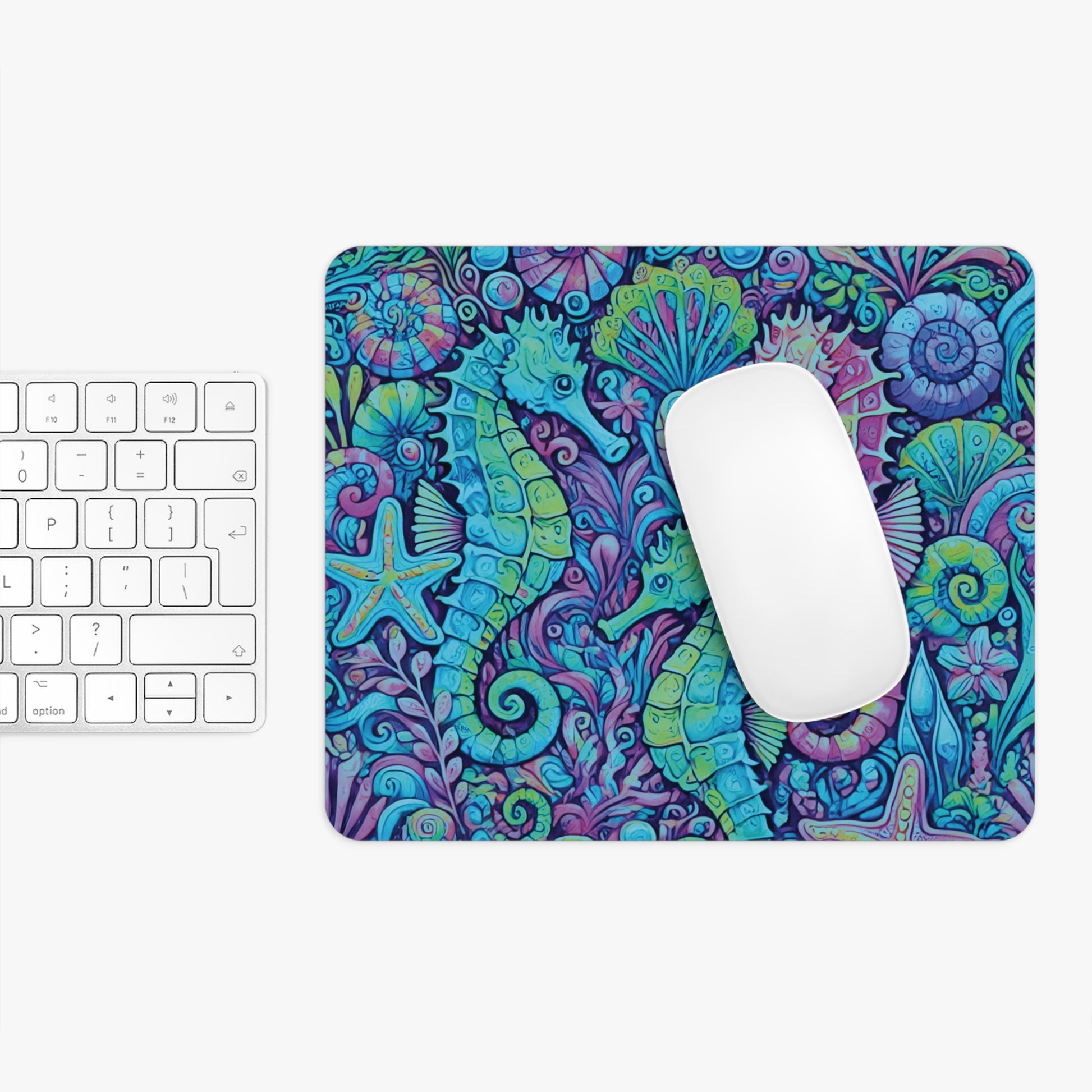 Brighten up your workspace with this vibrant and tropical mouse pad that blends functionality with artistry. The colorful Seahorse Trio design creates a lively atmosphere, making every day at your desk feel refreshing and inspired. Ideal for students, professionals, and anyone who spends time on a computer, this mouse pad is a perfect addition to your home office or study area. It's especially great for beach lovers and nature enthusiasts. Whether it's for a housewarming gift, a birthday, or a simple treat for yourself, this mouse pad is sure to delight on any occasion.