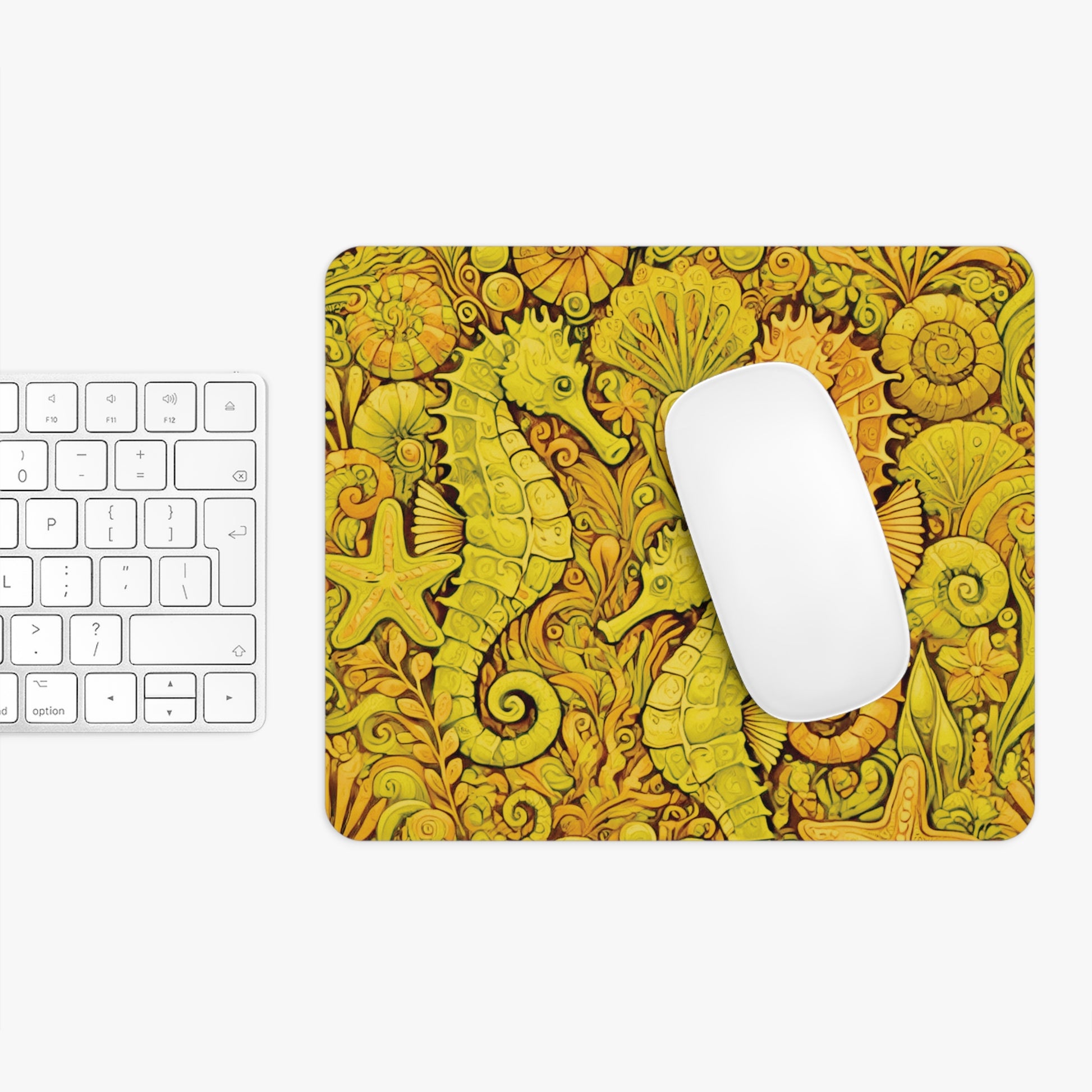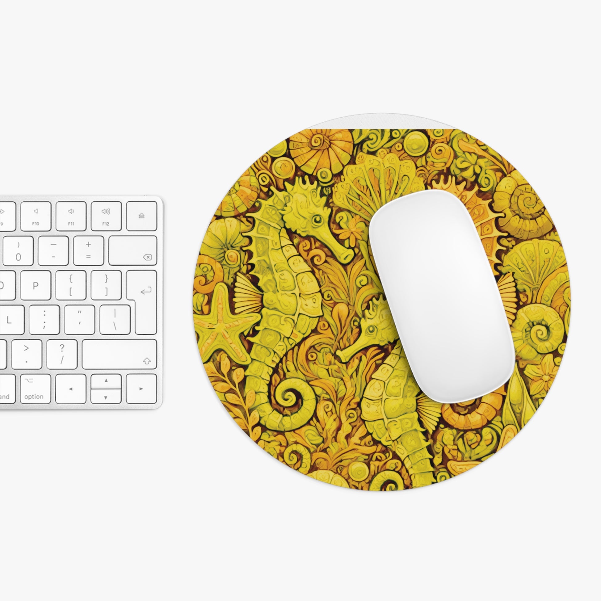 Tropical Mouse Pad, 2 Shapes - Beach Vibes for Home Office & Gamer / Seahorse Trio, Yellow