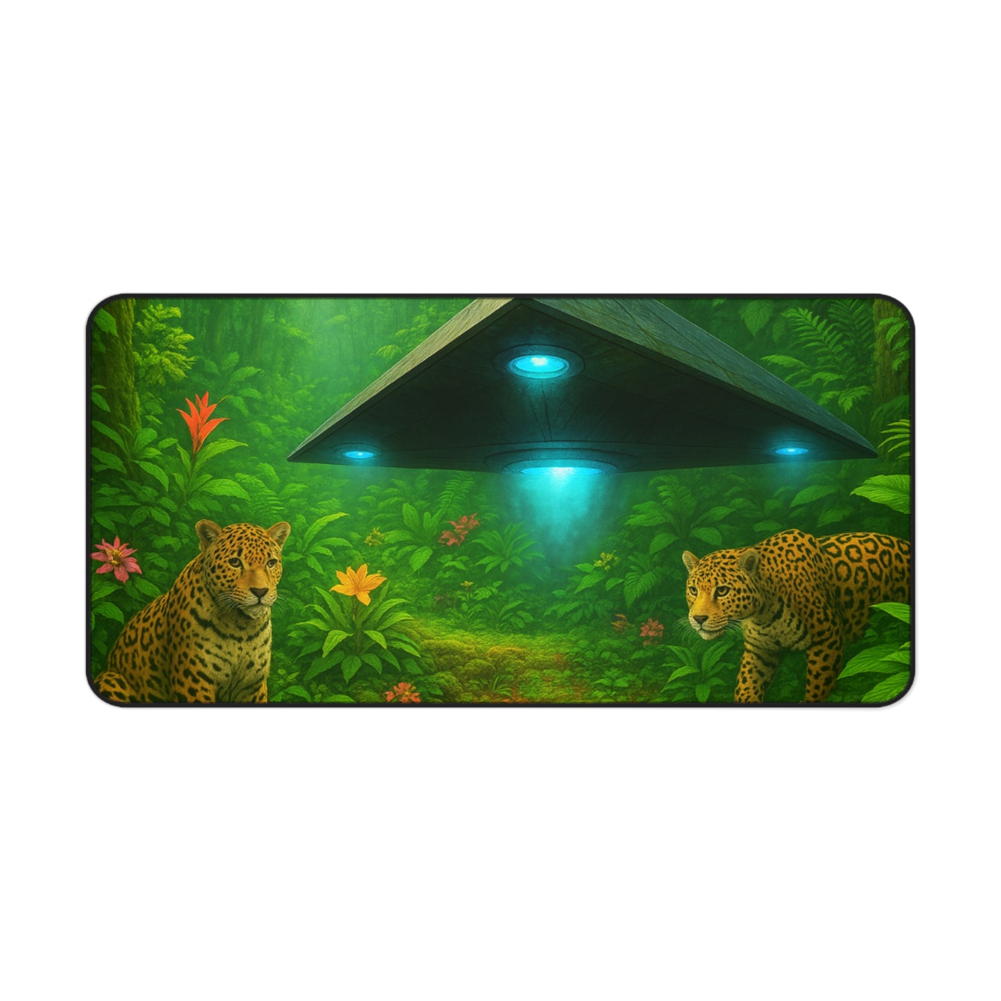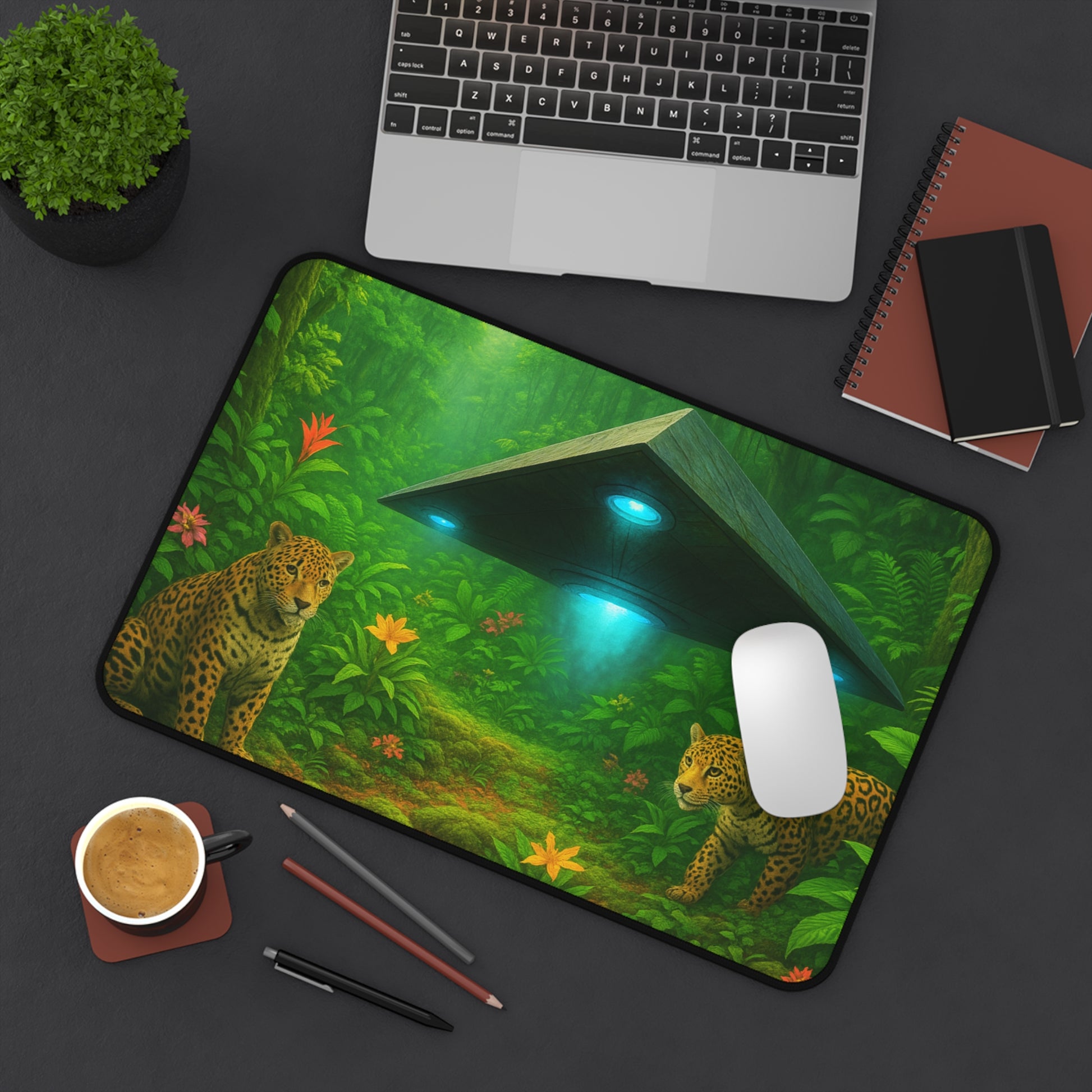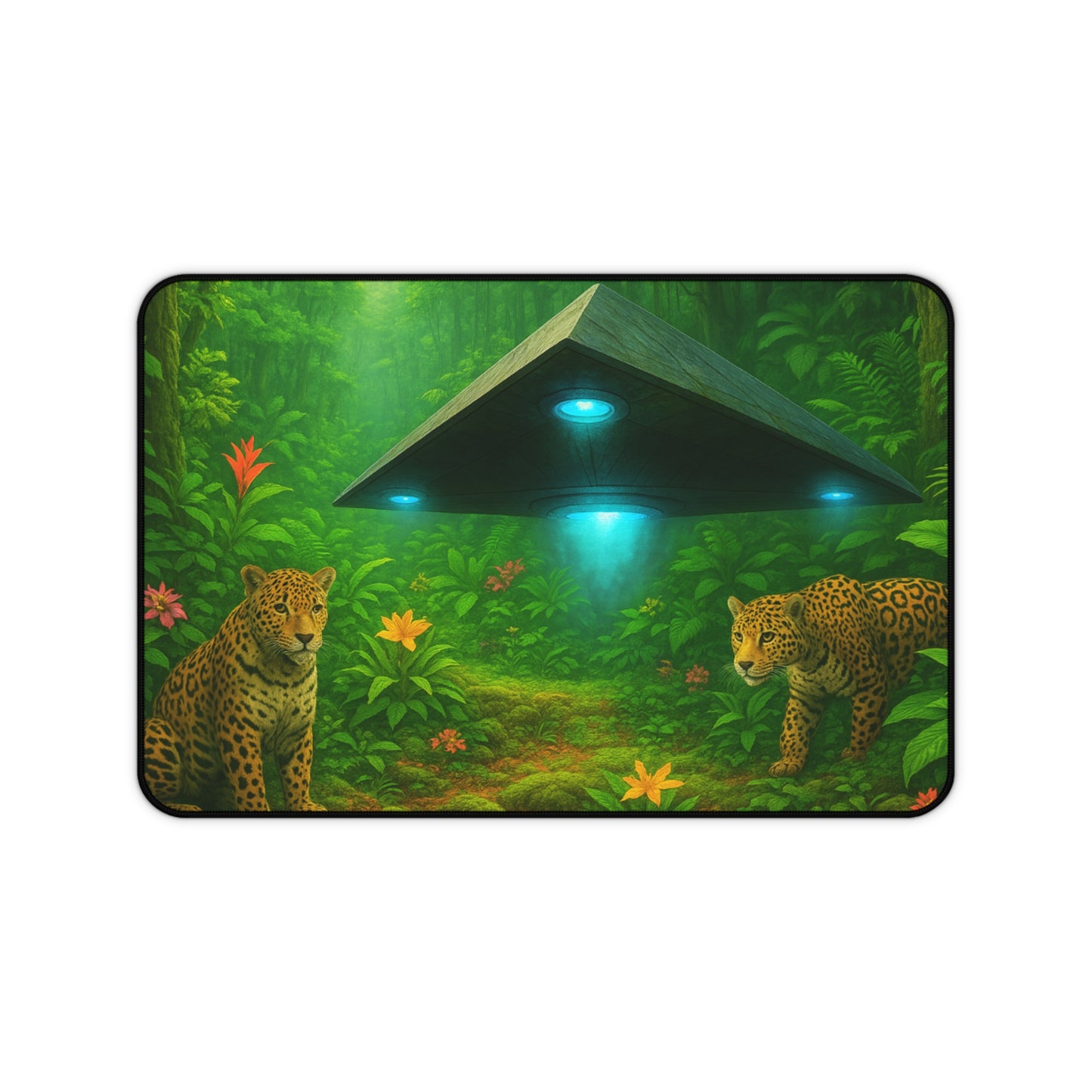 Tropical Mouse Pad/Desk Mat, 3 Sizes - Perfect for Home Office / Rainforest UFO and Jaguars