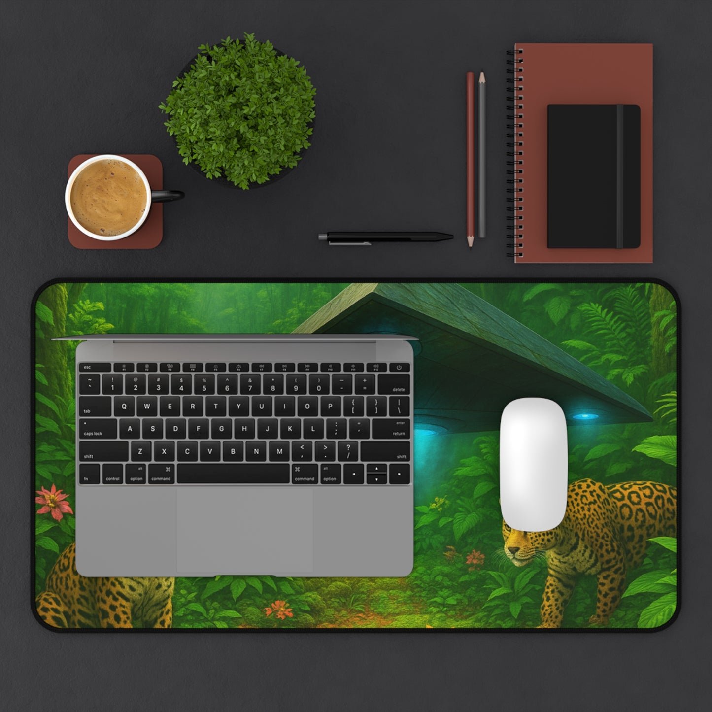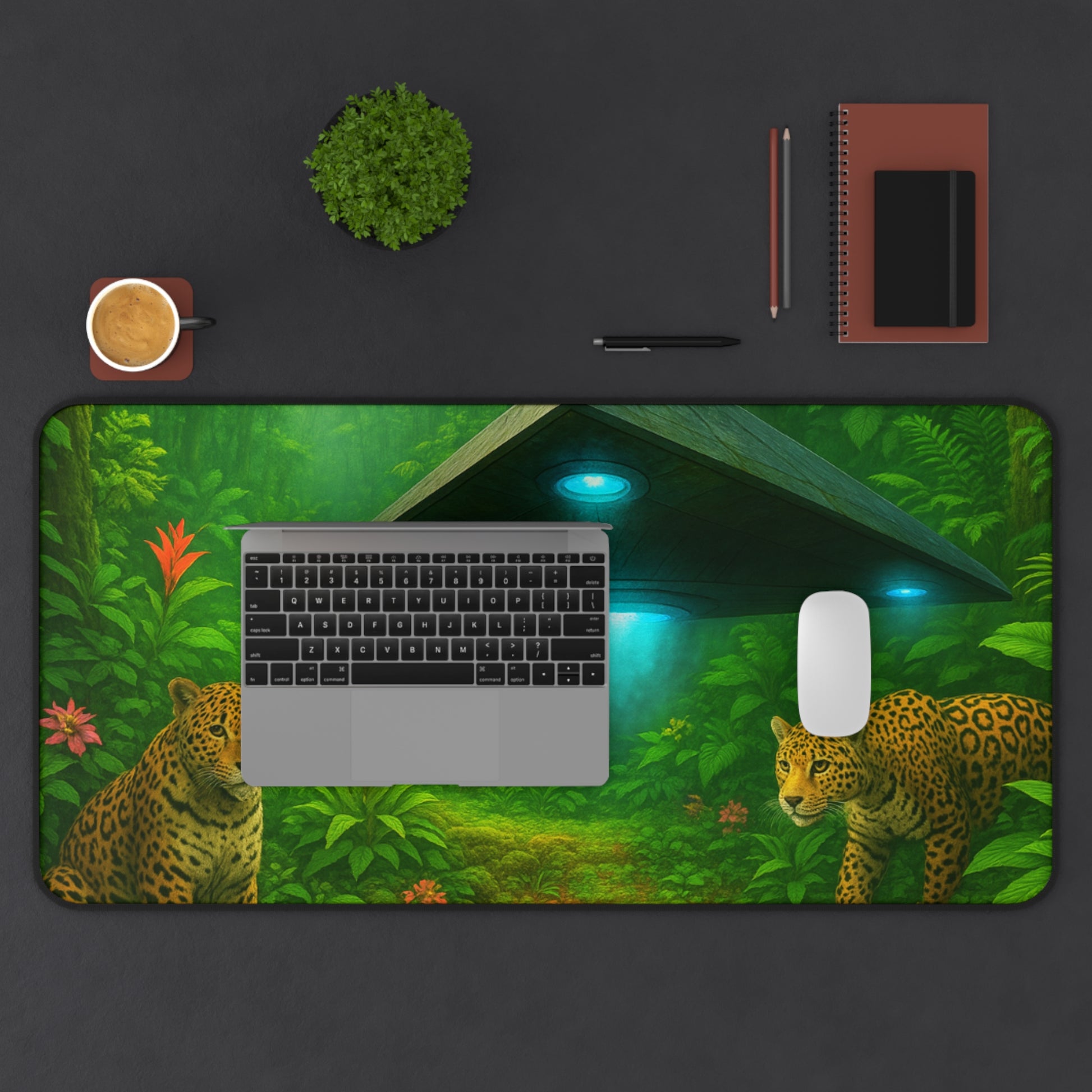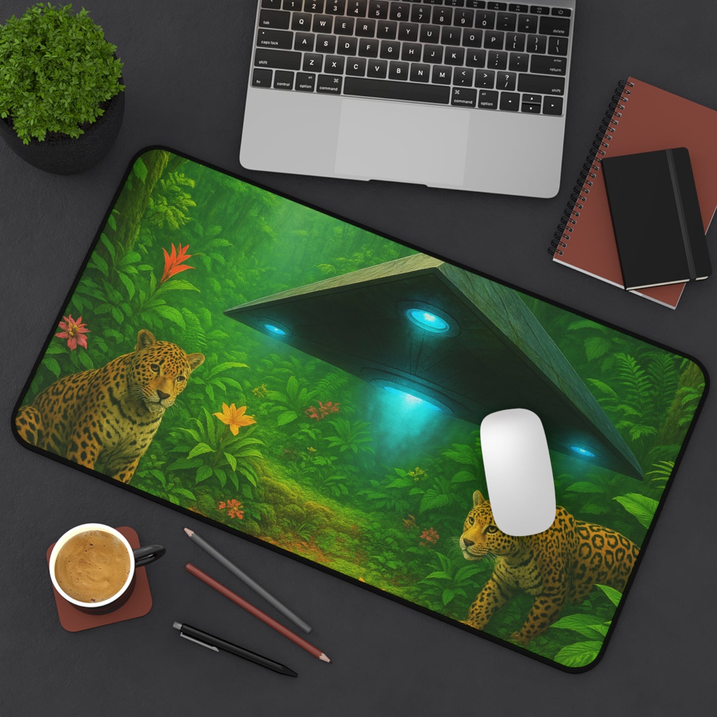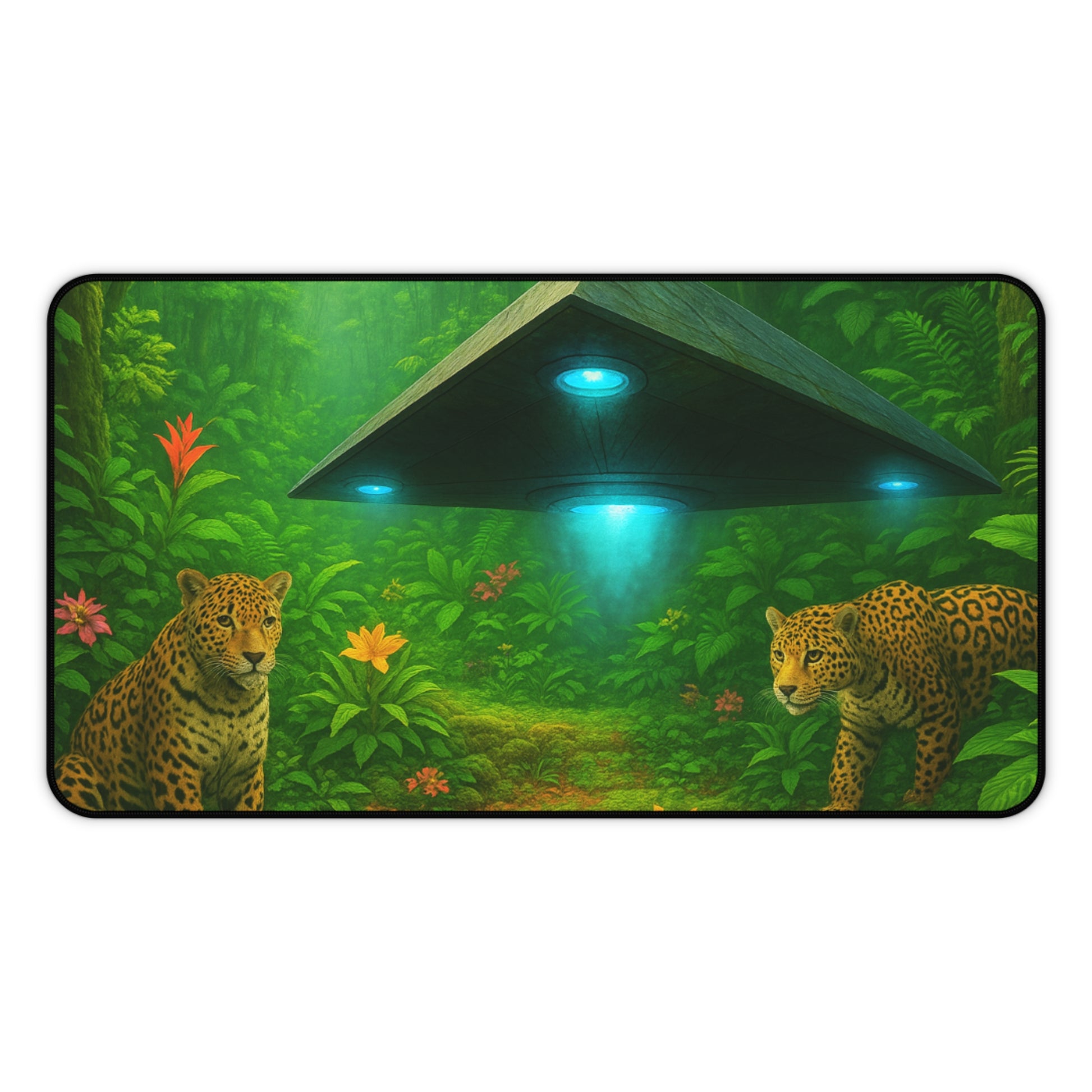 Tropical Mouse Pad/Desk Mat, 3 Sizes - Perfect for Home Office / Rainforest UFO and Jaguars