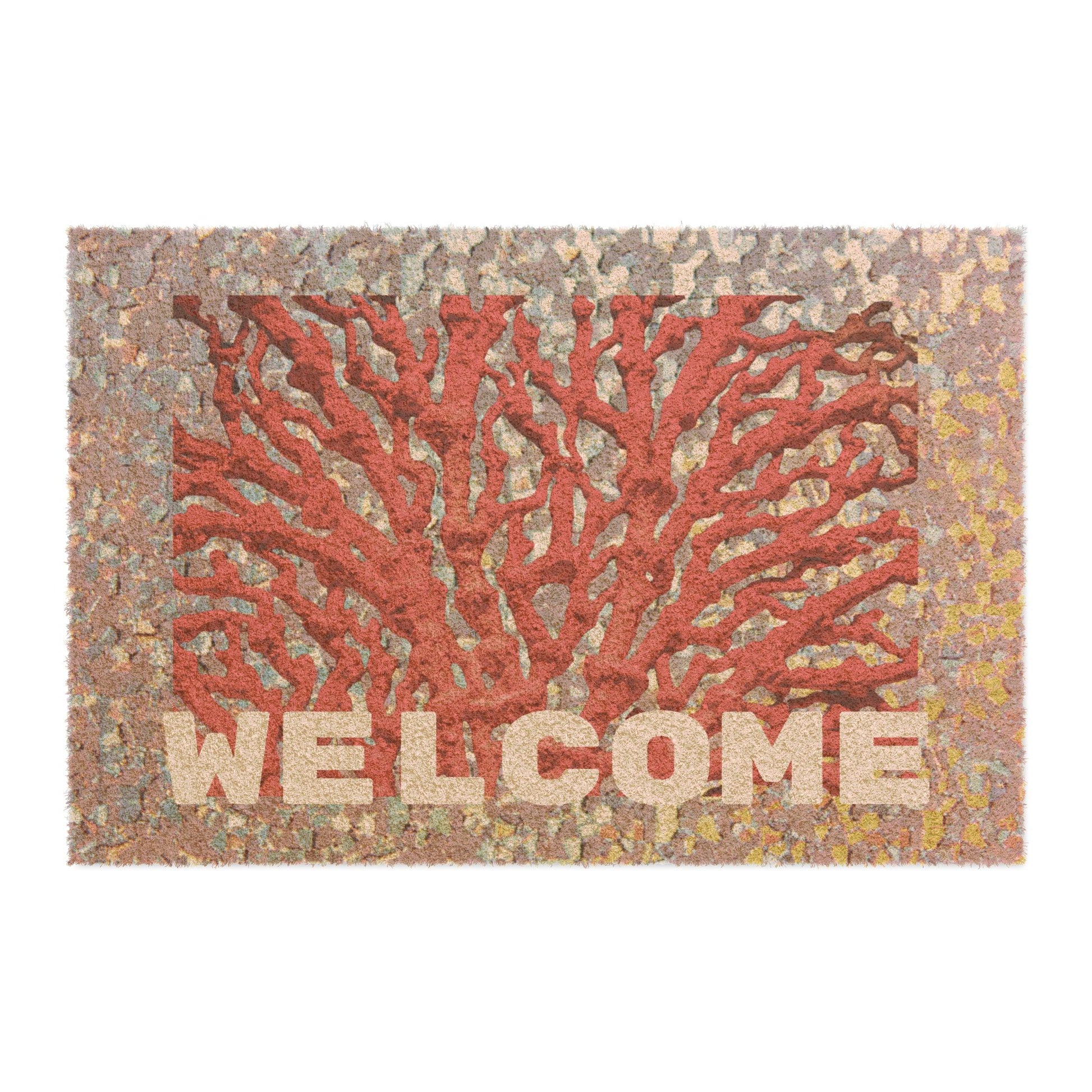 Tropical Ocean Door Mat - Vibrant Coconut Fiber Entrance Mat / Coastal Red Coral Reef
