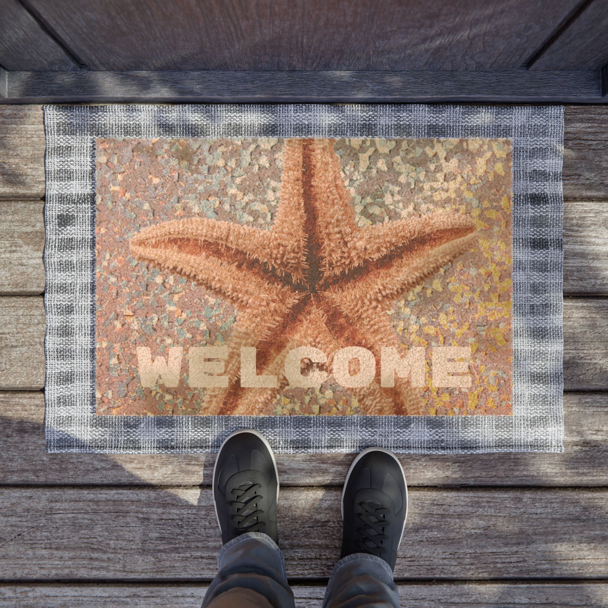 Elevate your entryway with our stunning doormat, designed to offer a warm and inviting first impression. Made from high-quality coconut coir fiber, this eco-friendly addition is perfect for welcoming guests or simply enhancing your home’s aesthetic. The vibrant starfish disco shimmer design brings a touch of the beach to your home, creating a cheerful atmosphere that complements any outdoor space, and is made from photo of REAL starfish! Ideal for those who appreciate both style and sustainability, this doormat is a fantastic choice for housewarming gifts, holiday decorations, and seasonal celebrations. Whether it’s for a cozy family gathering or a festive party, this doormat is versatile enough to shine throughout the year, especially during spring and summer occasions. Perfect for homeowners, garden enthusiasts, and anyone who loves a pop of color at their doorstep!