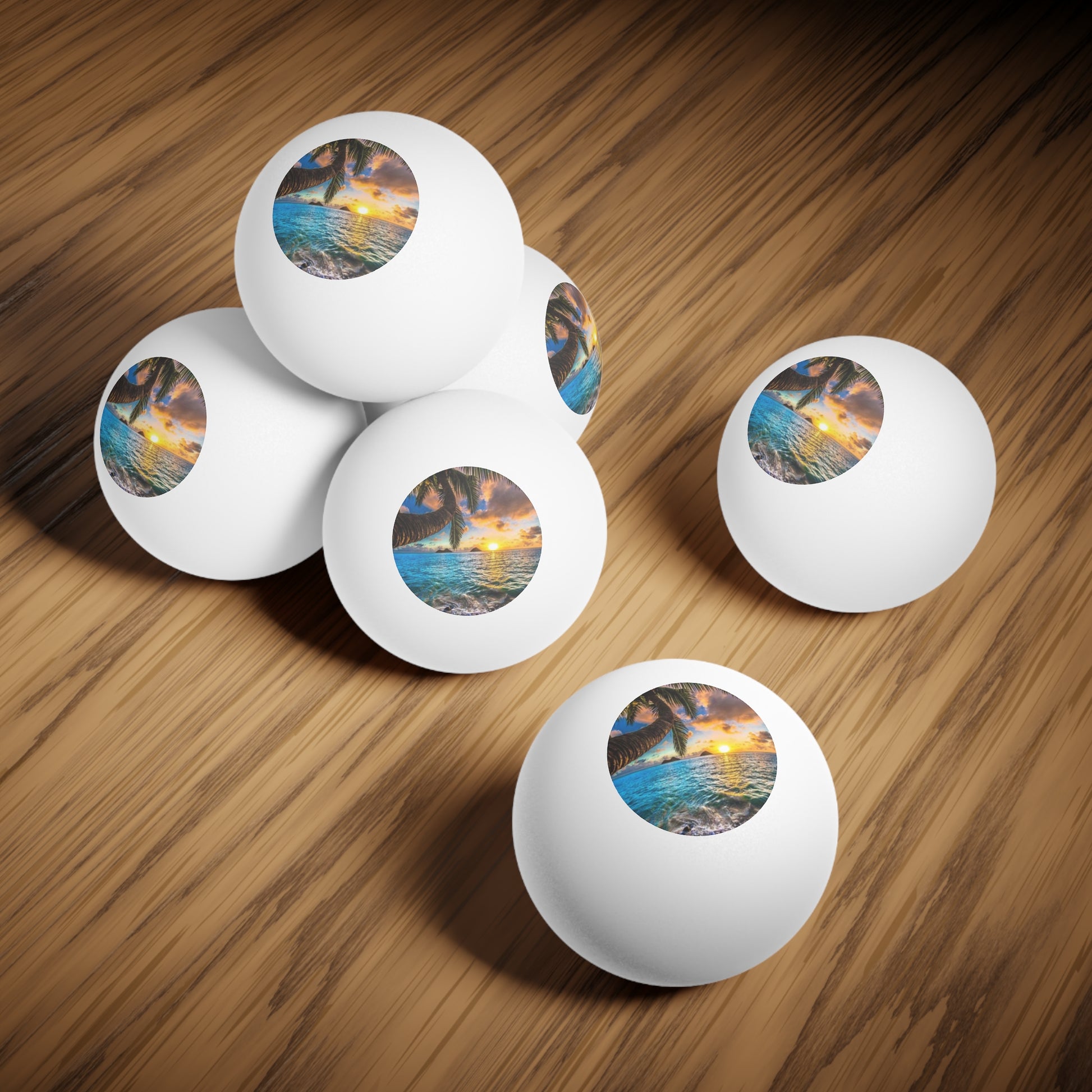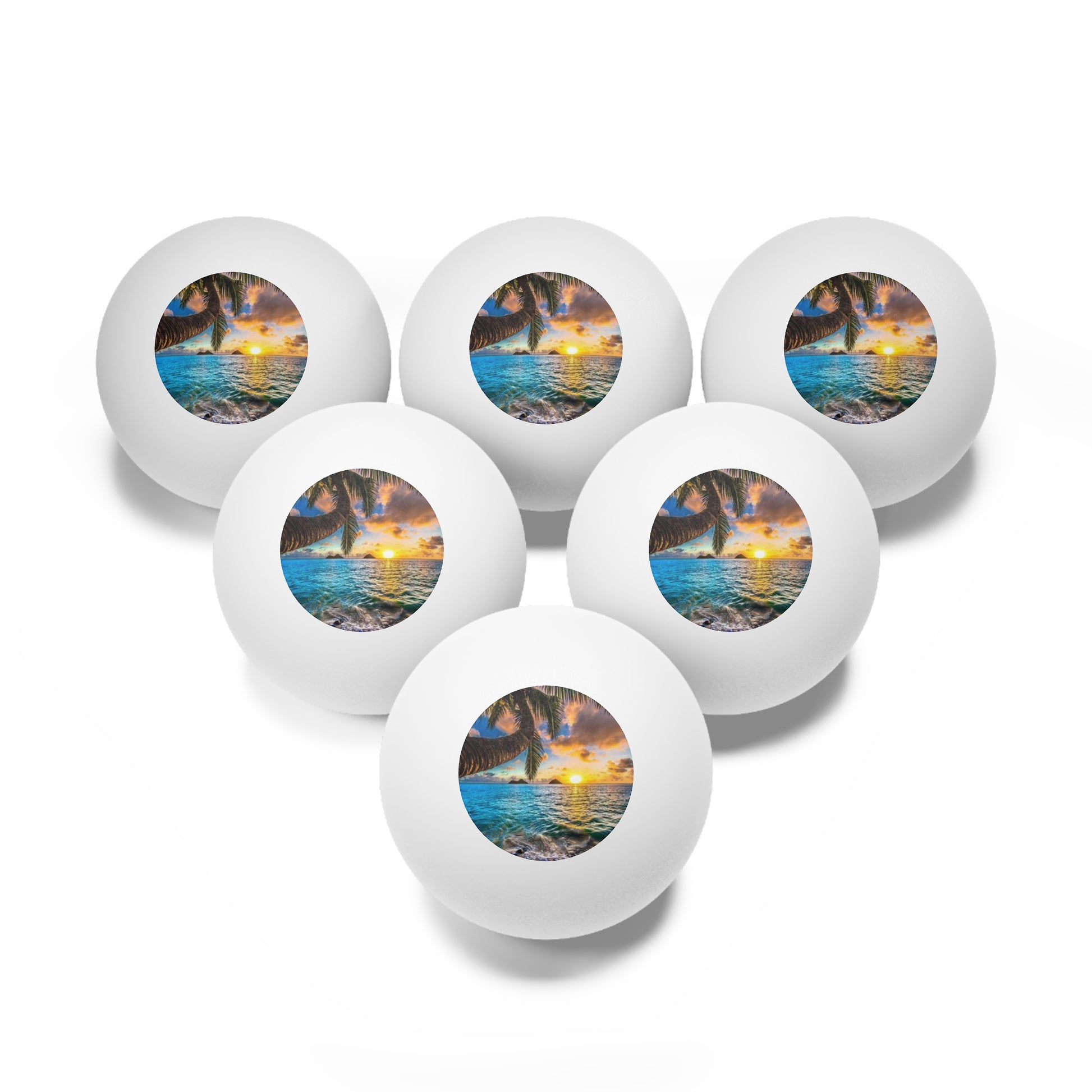 Tropical Paradise Ping Pong Balls - 6 Pack with Hawaiian Sunset
