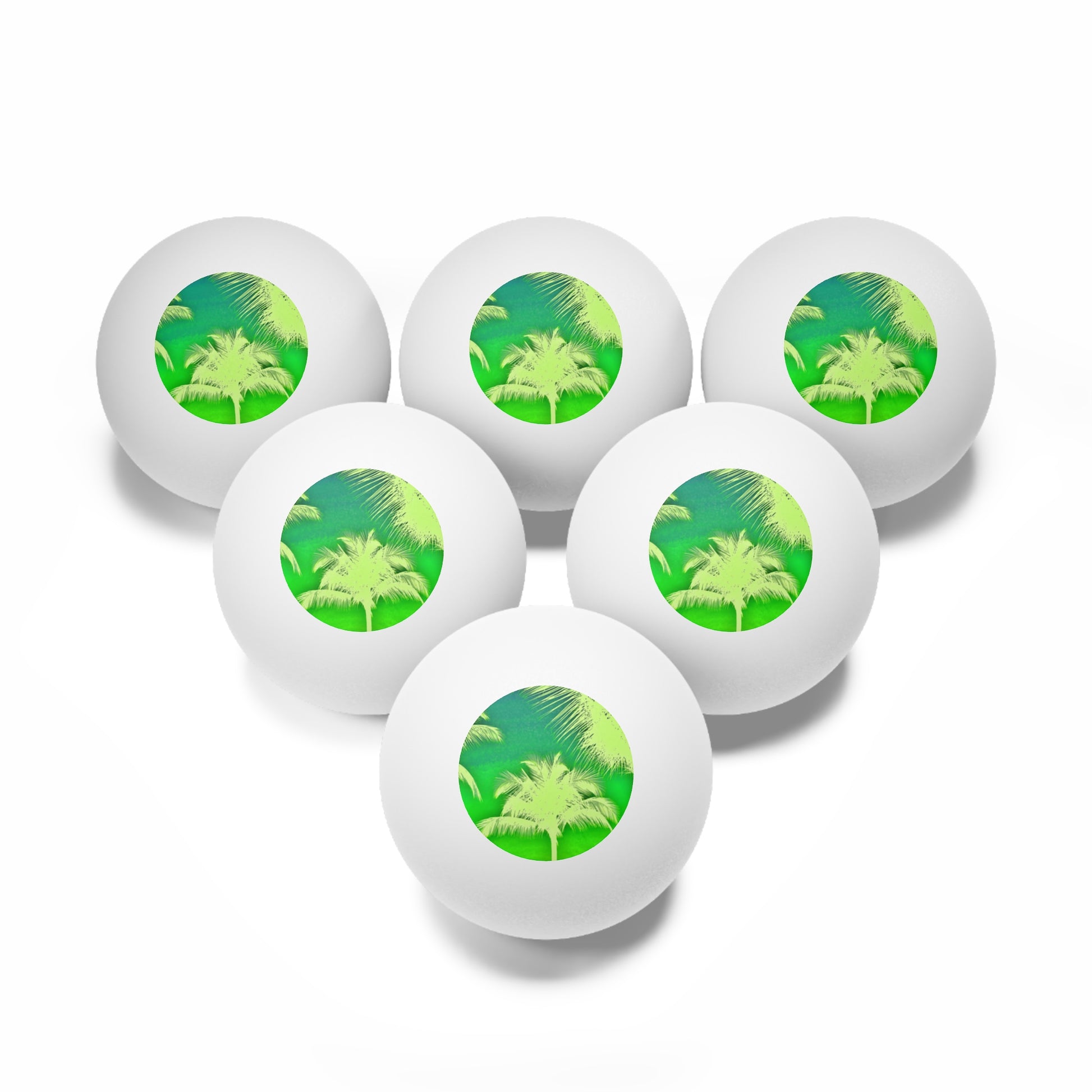 Tropical Paradise Ping Pong Balls - 6 Pack with Palm Glow Green
