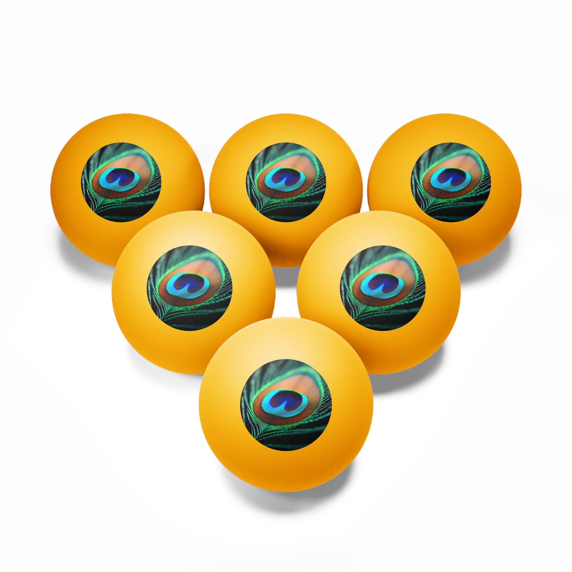 Tropical Paradise Ping Pong Balls - 6 Pack with Peacock Feather/Orange