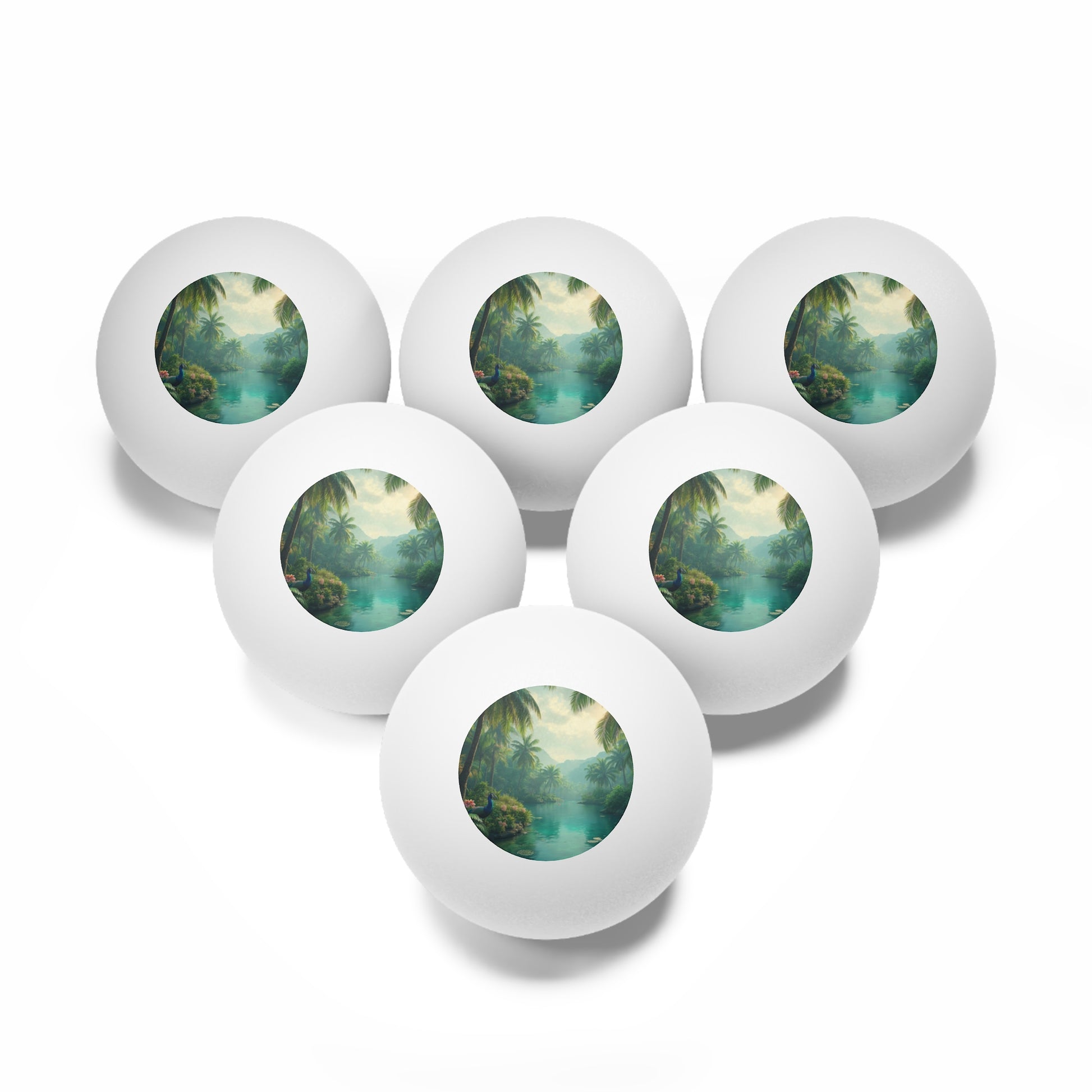 Tropical Paradise Ping Pong Balls - 6 Pack with Rainforest River Peacock