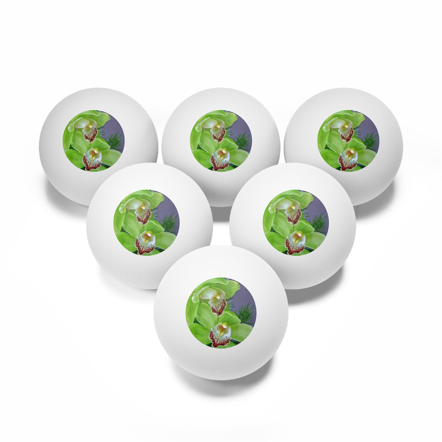 Tropical Paradise Ping Pong Balls - 6 Pack with Real Green Orchids
