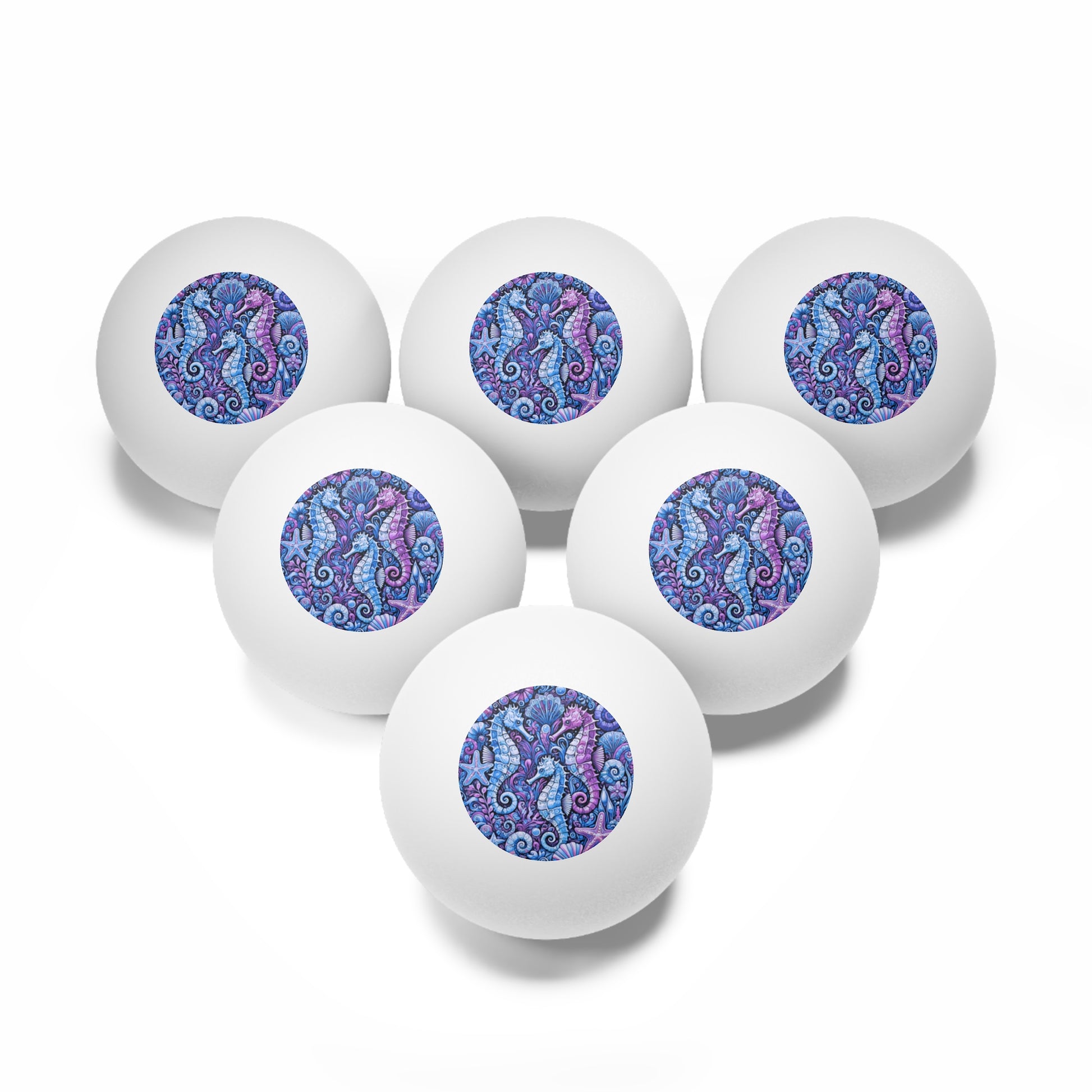 Tropical Paradise Ping Pong Balls - 6 Pack with Seahorse Trio/Blue