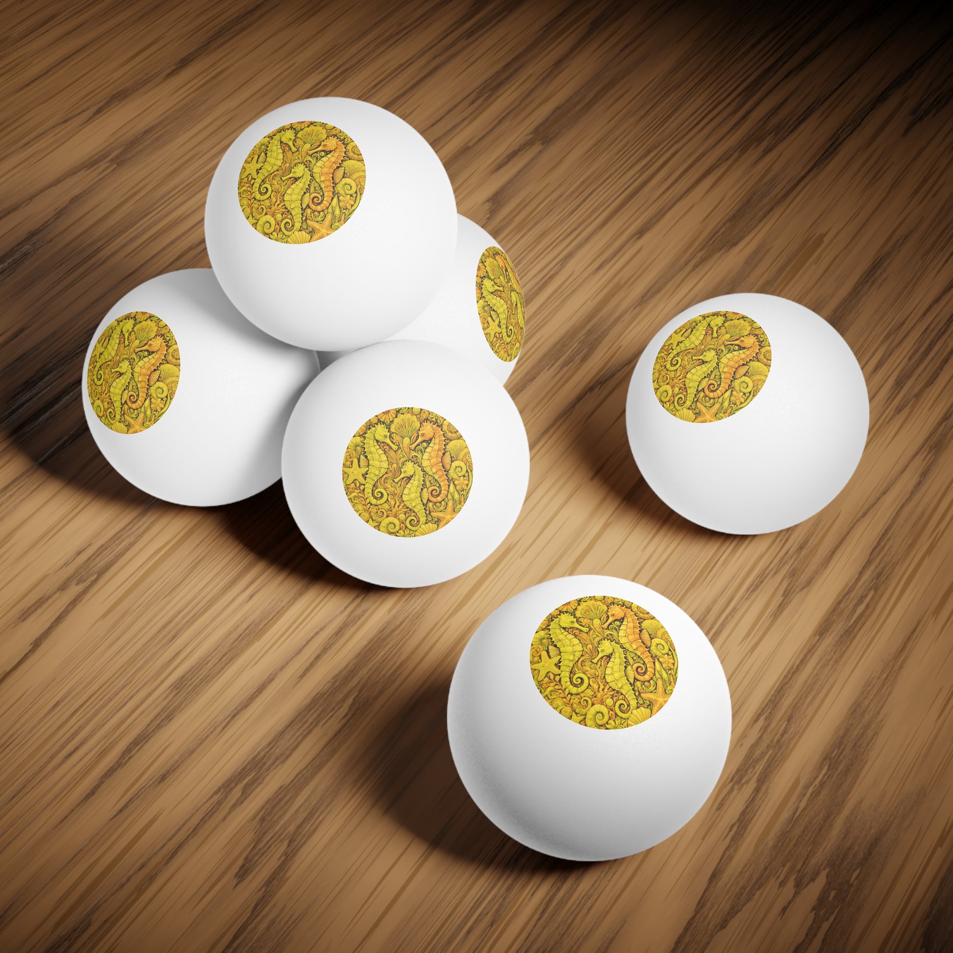 Tropical Paradise Ping Pong Balls - 6 Pack with Seahorse Trio/Yellow