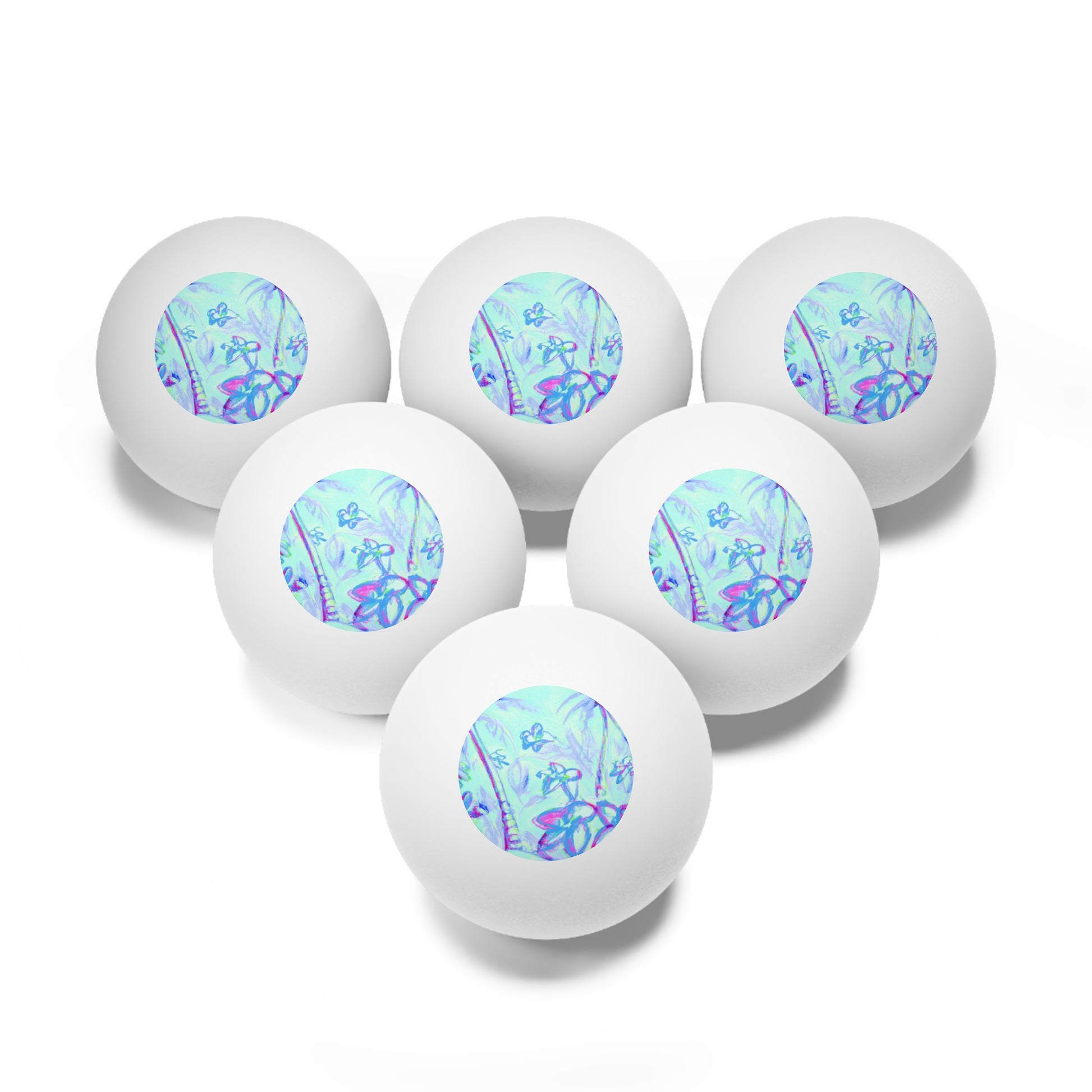 Tropical Paradise Ping Pong Balls - 6 Pack with Tropical Doodles, Blue