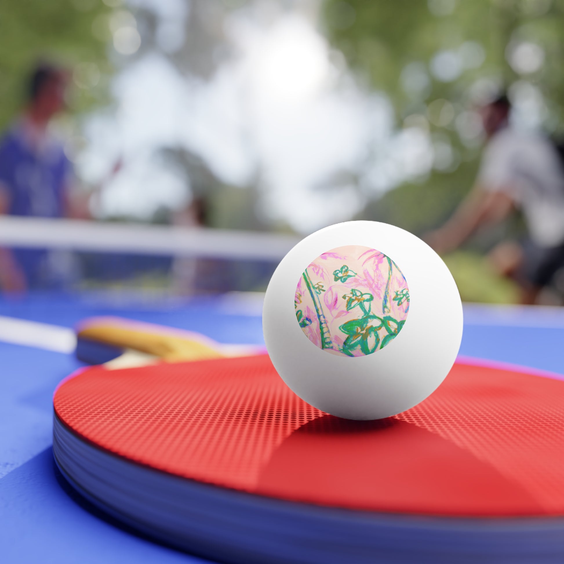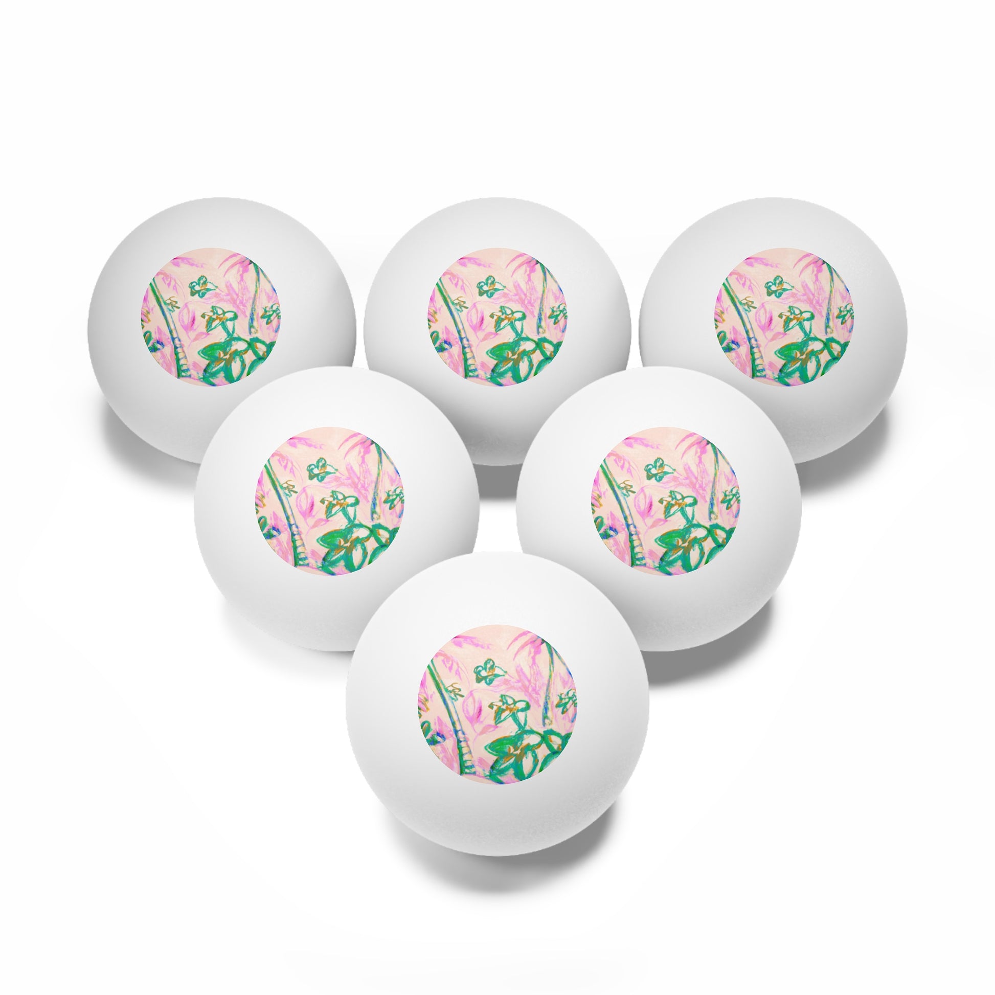 Tropical Paradise Ping Pong Balls - 6 Pack with Tropical Doodles, Pink