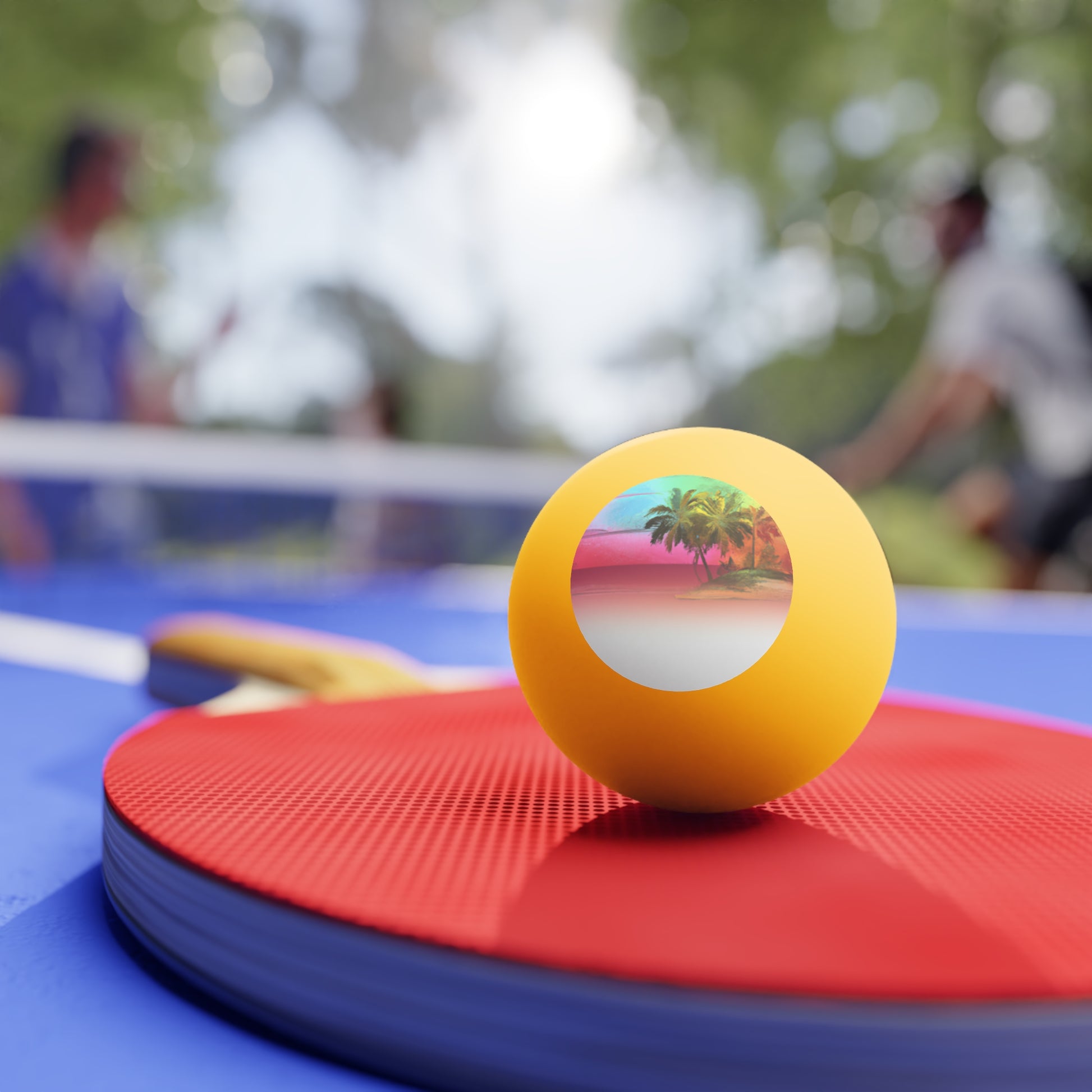 Tropical Paradise Ping Pong Balls - 6 Pack with Watercolor Beach/Orange