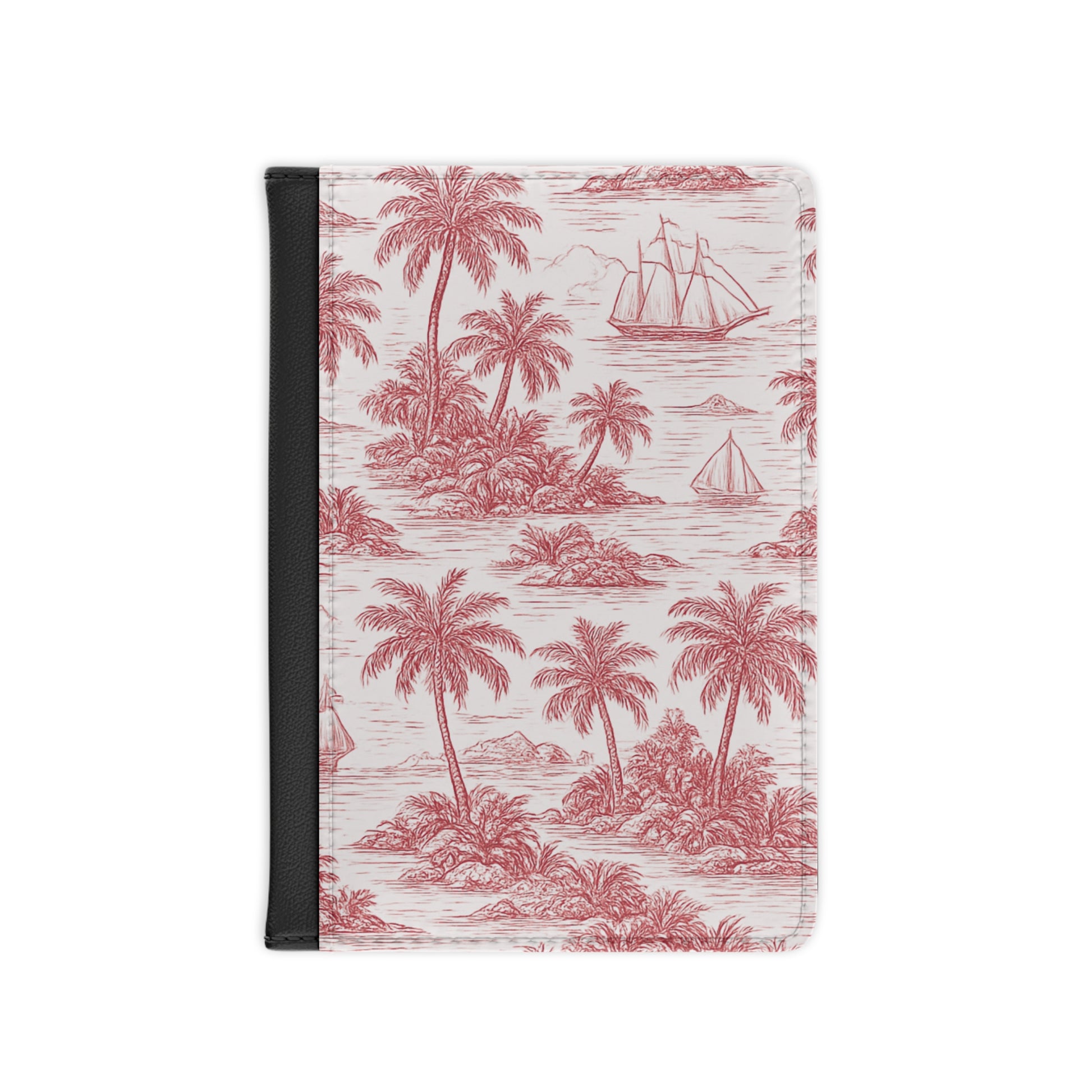 Tropical Passport Cover, Faux Leather - RFID blocking for travel security / Faraway Toile, Red