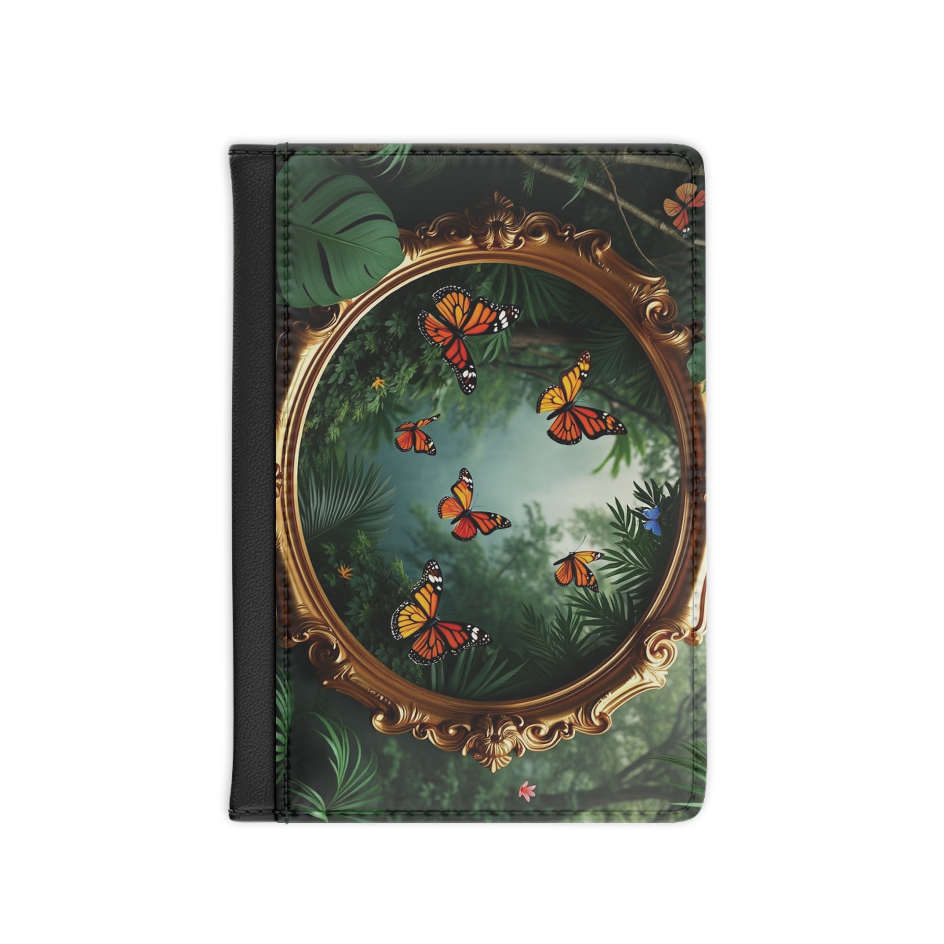Tropical Passport Cover, Faux Leather - RFID blocking for travel security / Framed Monarch Gathering