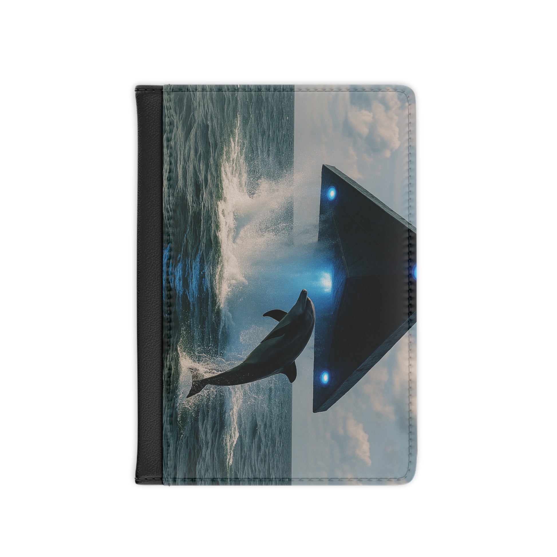 Tropical Passport Cover, Faux Leather - RFID blocking for travel security / UFO and Dolphin