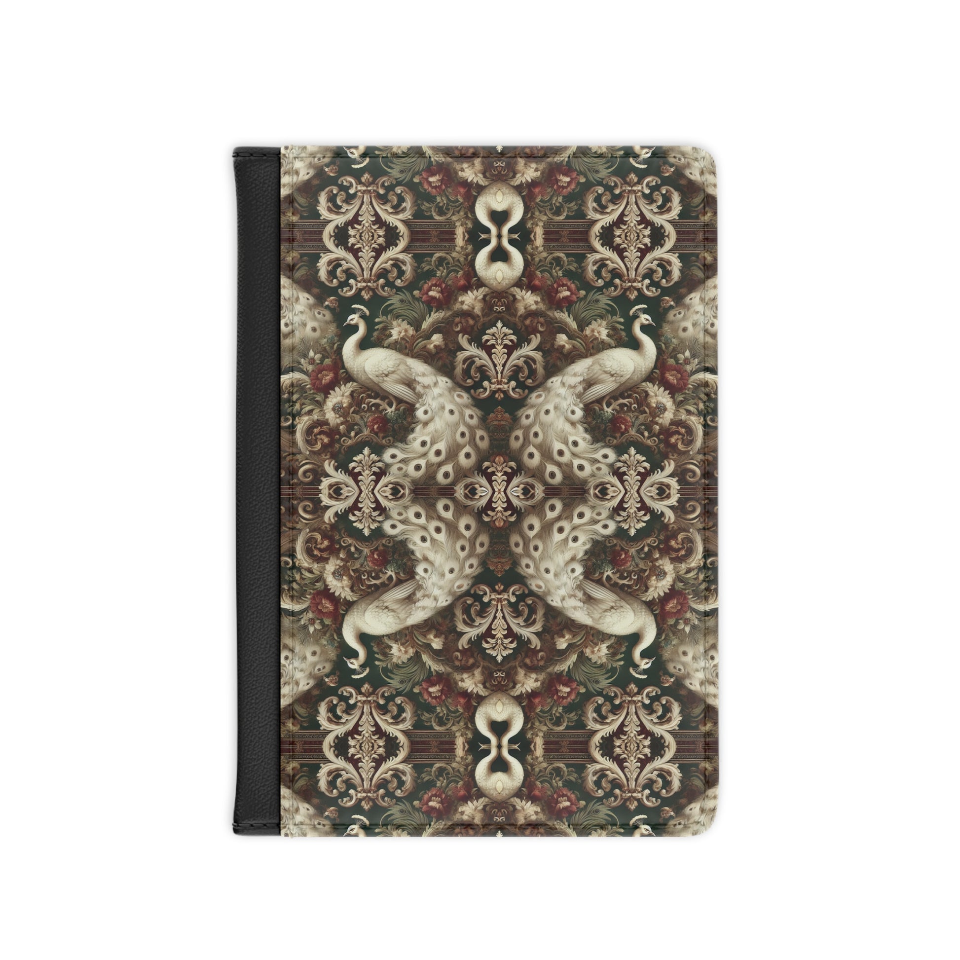 Tropical Passport Cover, Faux Leather - RFID blocking for travel security / Kaleidoscope White Peacocks