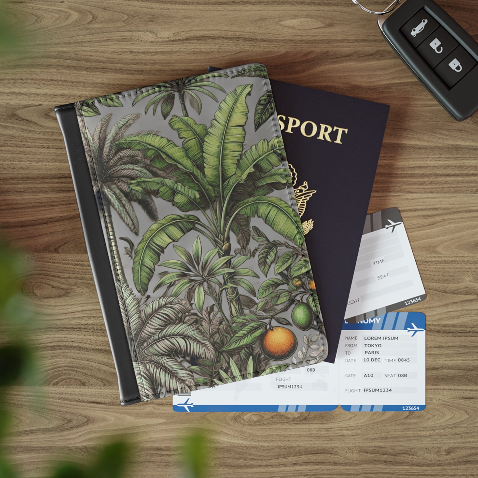 Tropical Passport Cover, Faux Leather - RFID blocking for travel security / More Tropical Fruit, Grey
