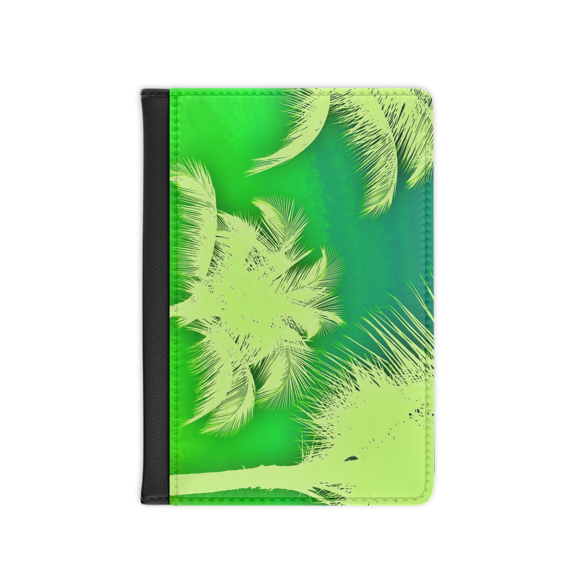 Tropical Passport Cover, Faux Leather - RFID blocking for travel security / Palm Glow Green