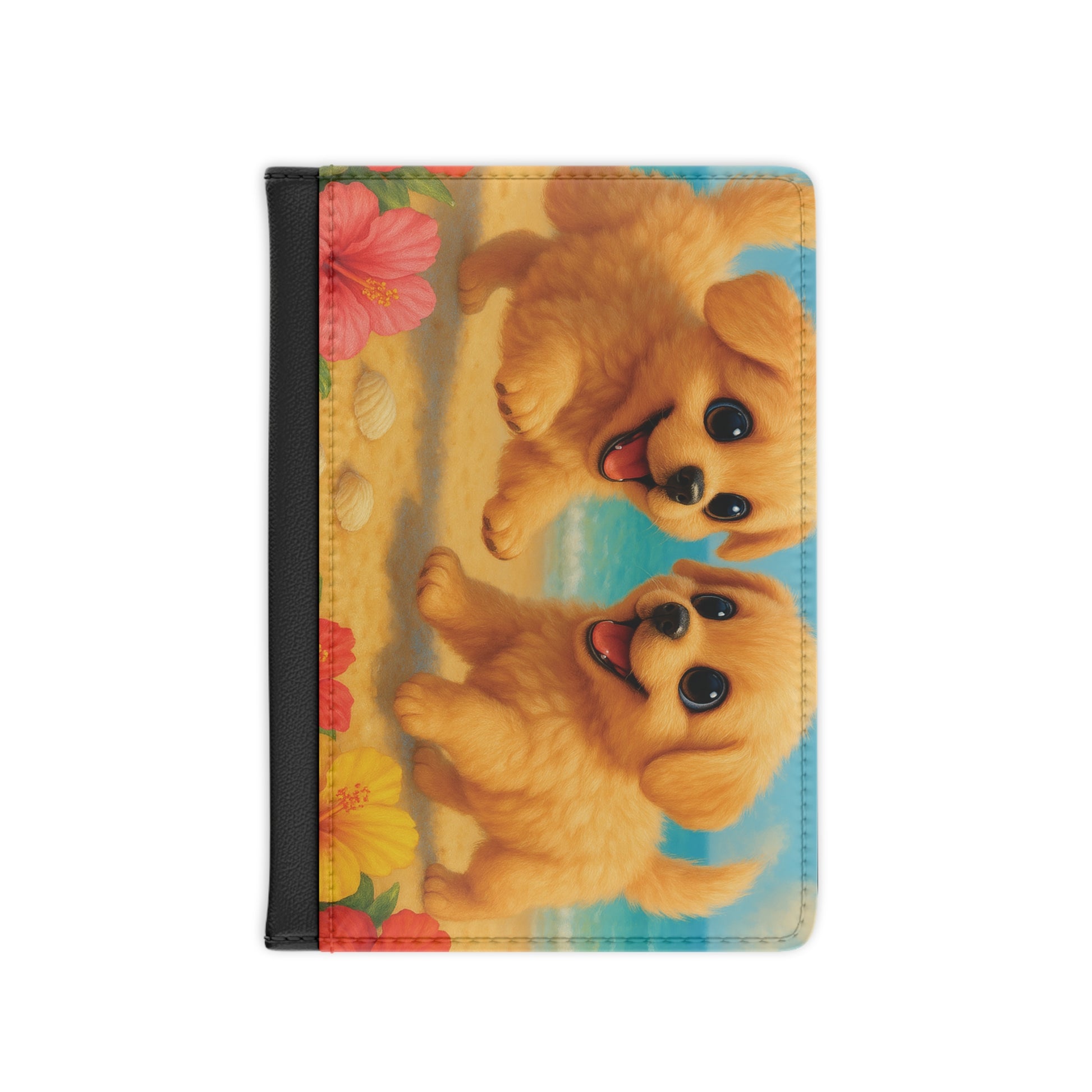Tropical Passport Cover, Faux Leather - RFID blocking for travel security / Puppies on the Dog Beach