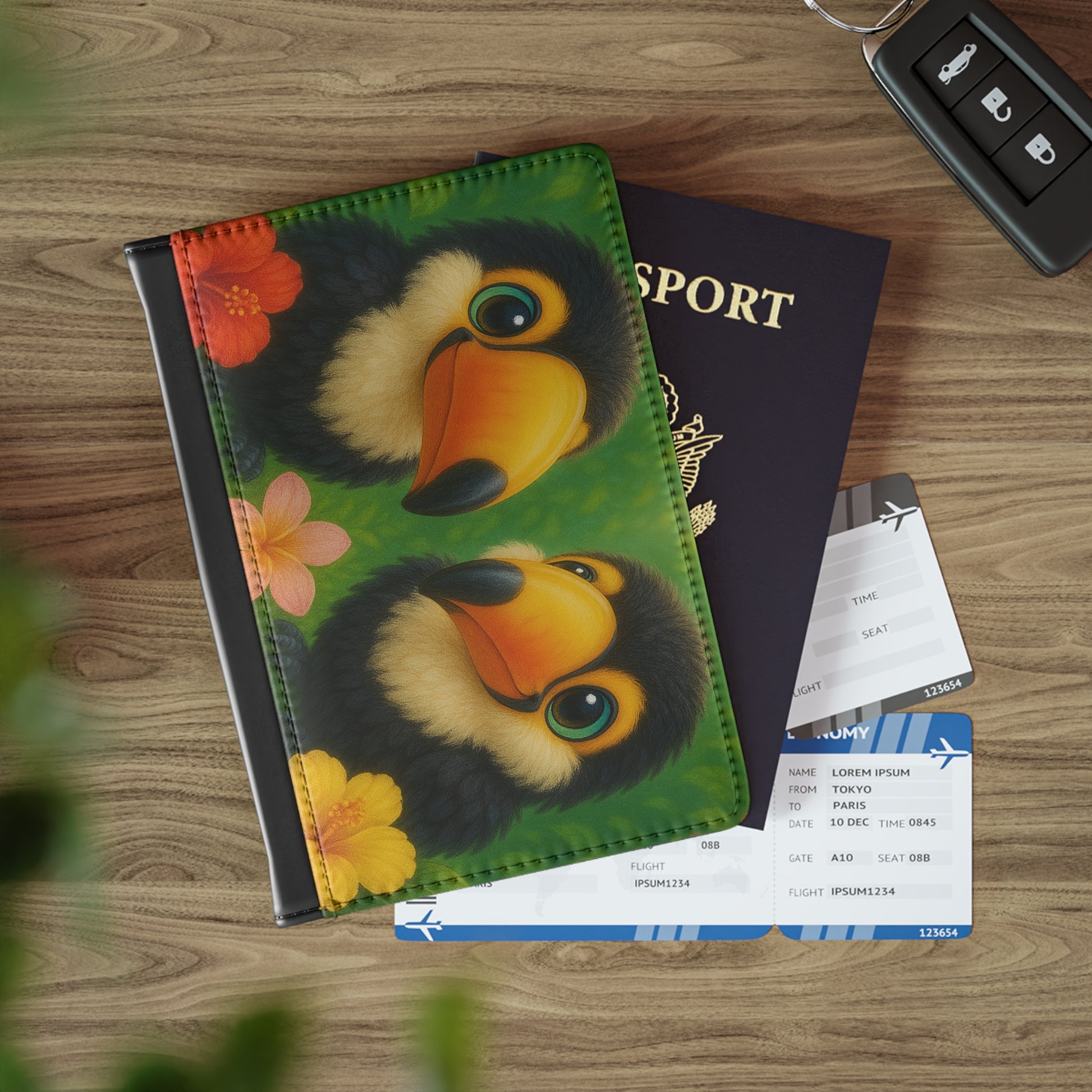 Tropical Passport Cover, Faux Leather - RFID blocking for travel security / Rainforest Baby Two Toucans