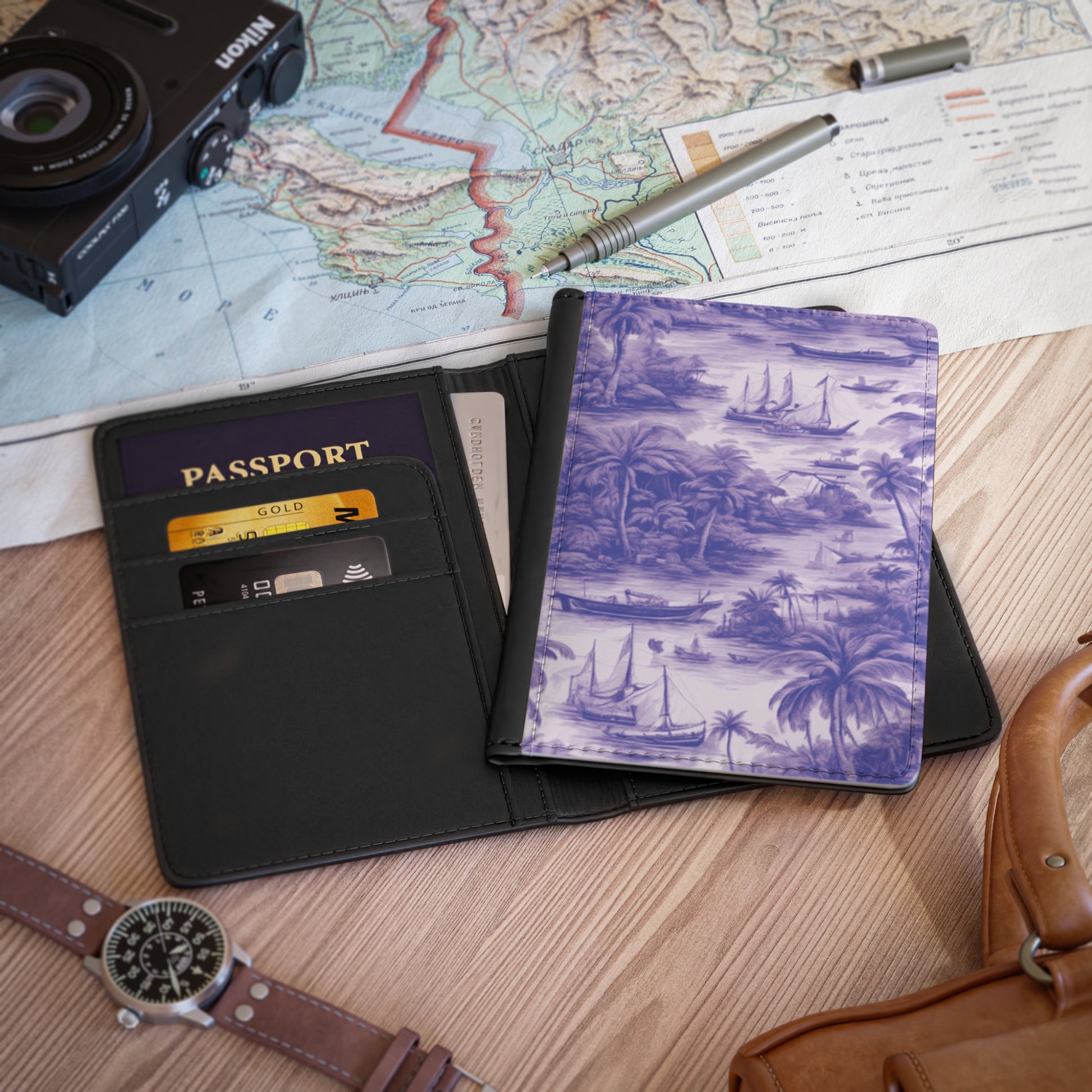 Tropical Passport Cover, Faux Leather - RFID blocking for travel security / Tropical Toile, Purple
