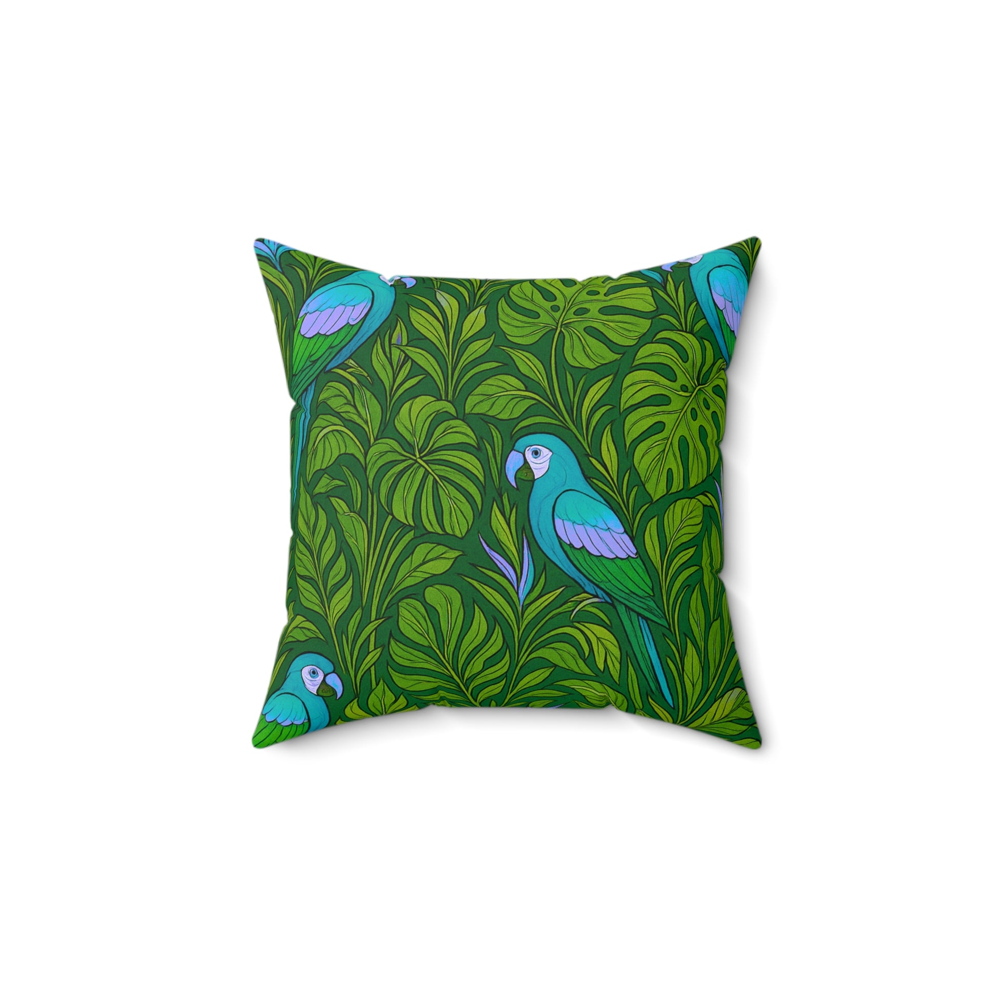 Tropical Pillow, 4 sizes - Colorful Spun Polyester Square Cushion / Parrot Family, Blue