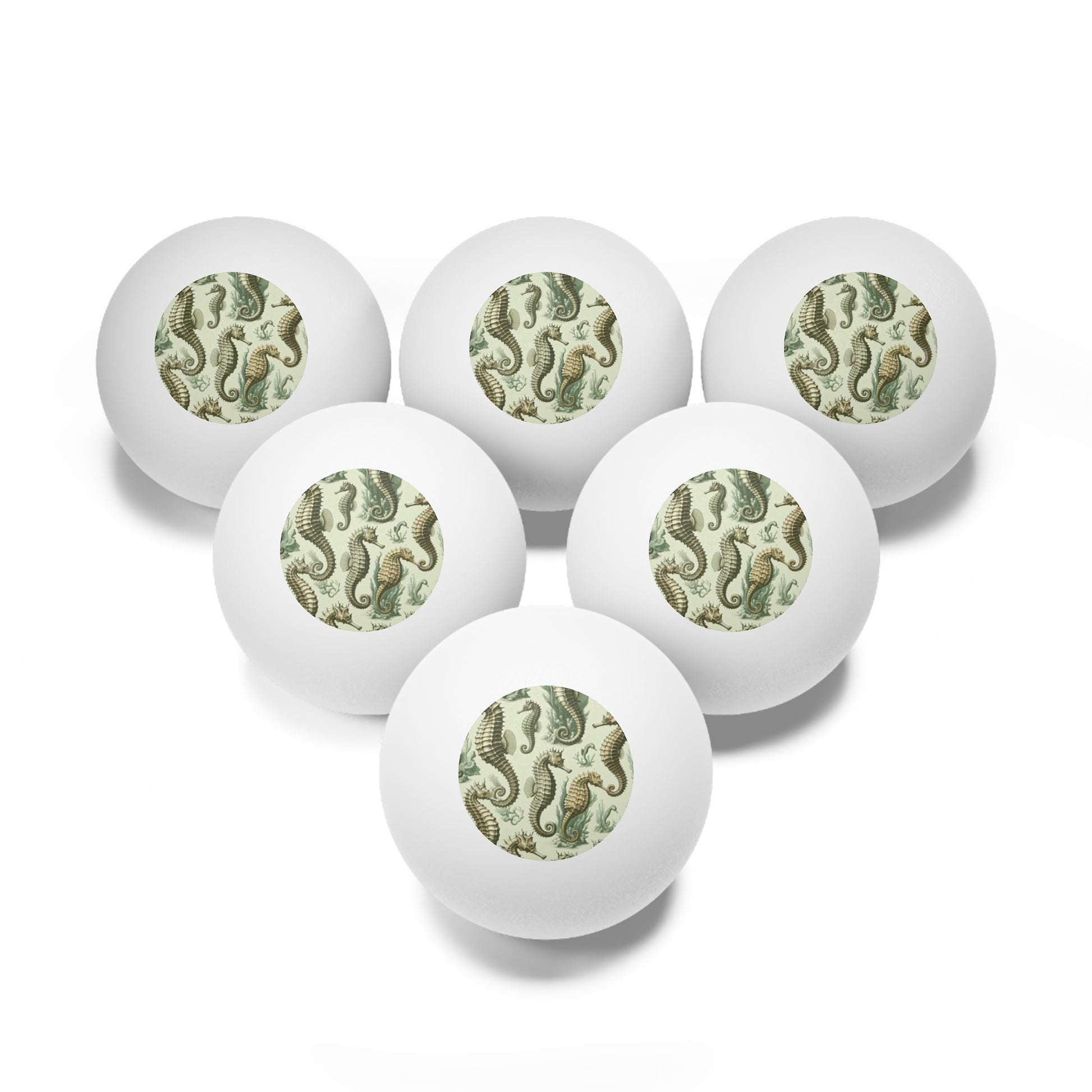 Tropical Ping Pong Balls - 6 Pack with Green Toile Seahorses