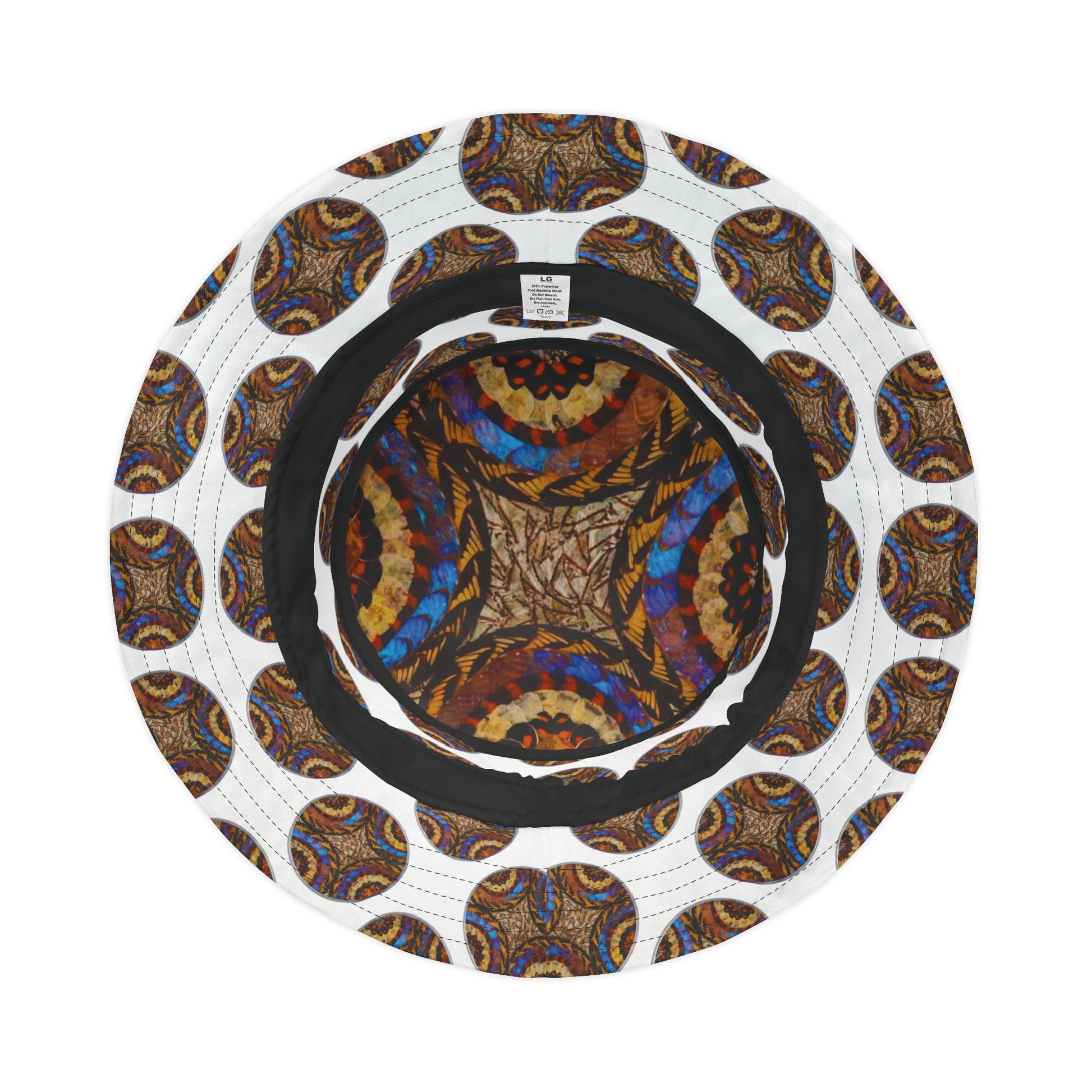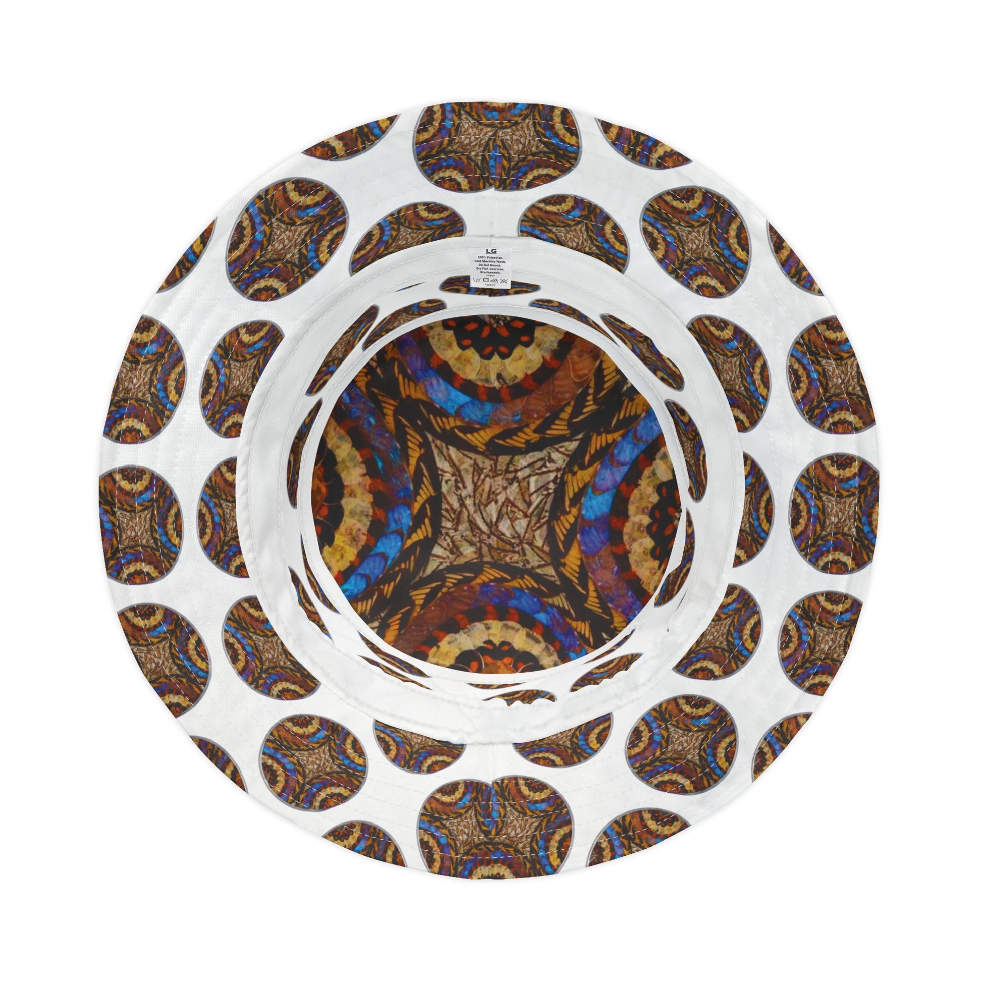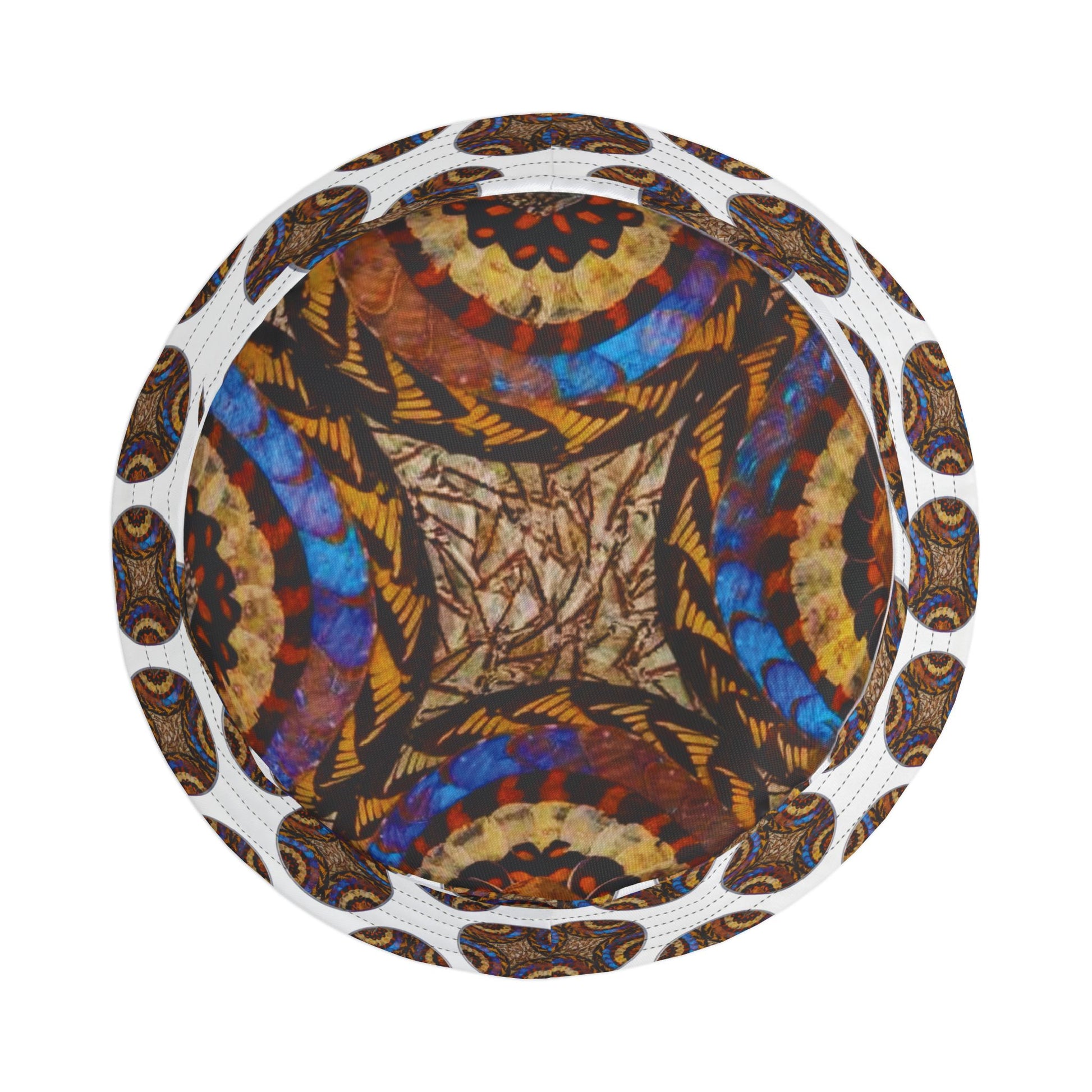 Introducing our vibrant Bucket Hat, a must-have accessory for your summer adventures! With its stunning colors and intricate designs, this tropical hat adds a playful touch to any outfit. Features photo of 1950's Brazilian wall plate showcasing real exotic butterfly wings in a beautiful pattern under curved glass. This bucket hat not only protects you from the sun but also elevates your style. It’s perfect for those who love to express their individuality and enjoy the outdoors. Ideal for water aerobics classes, pool dips, music festivals, summer picnics, or casual outings with friends, it's a versatile choice for anyone looking to make a statement.