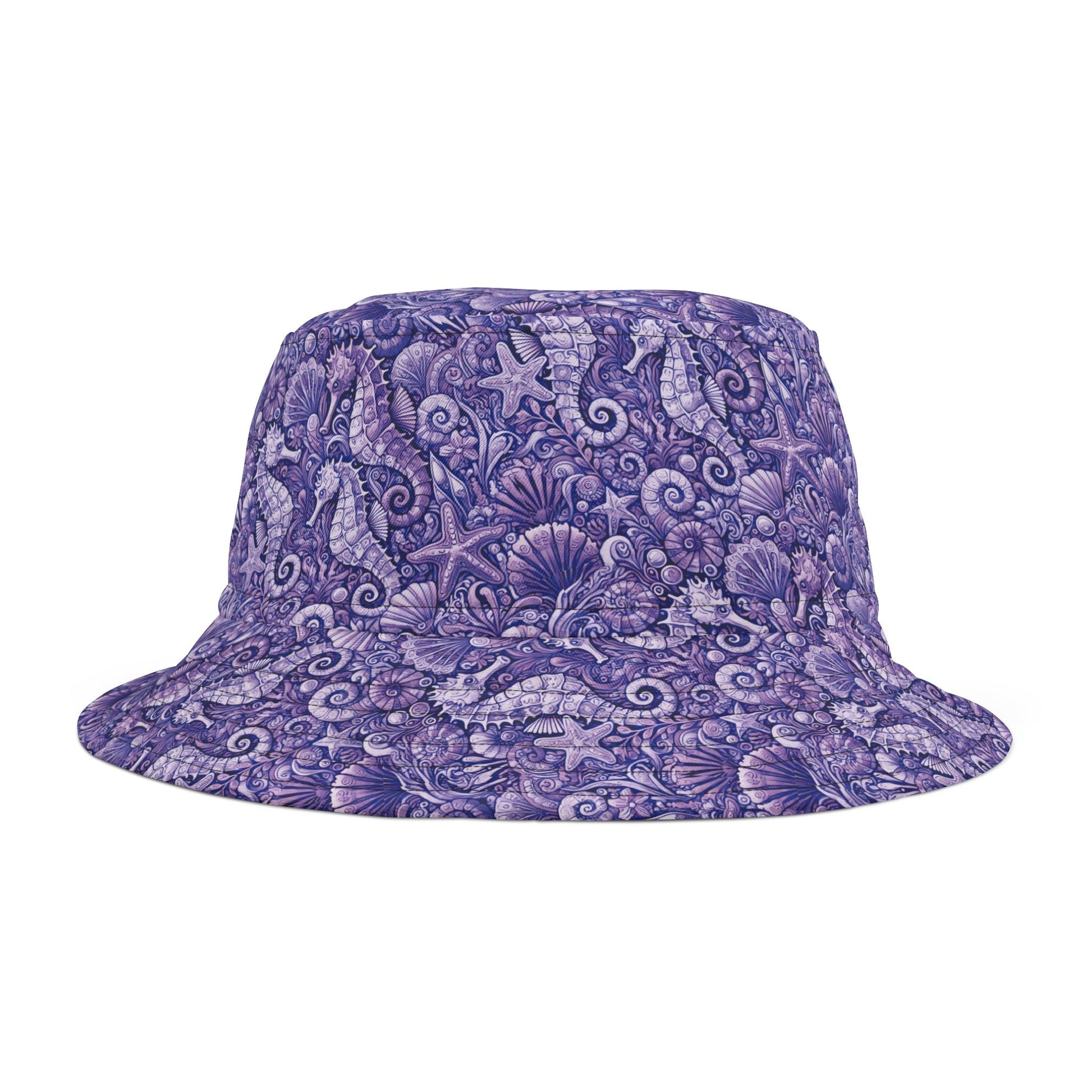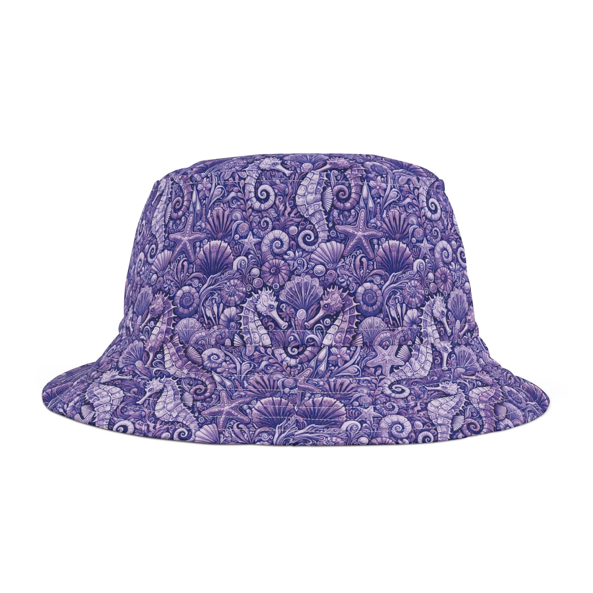 Tropical Polyester Bucket Hat, 2 Sizes - Seahorses Amethyst