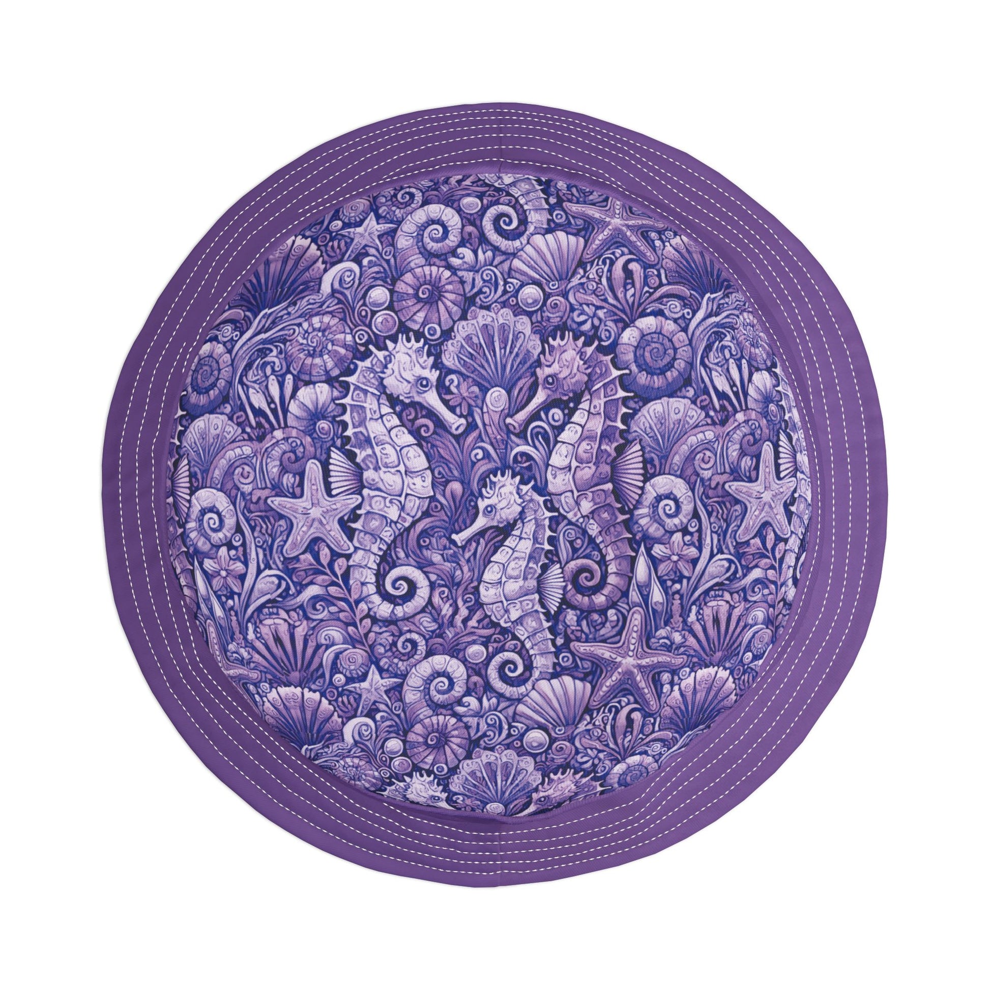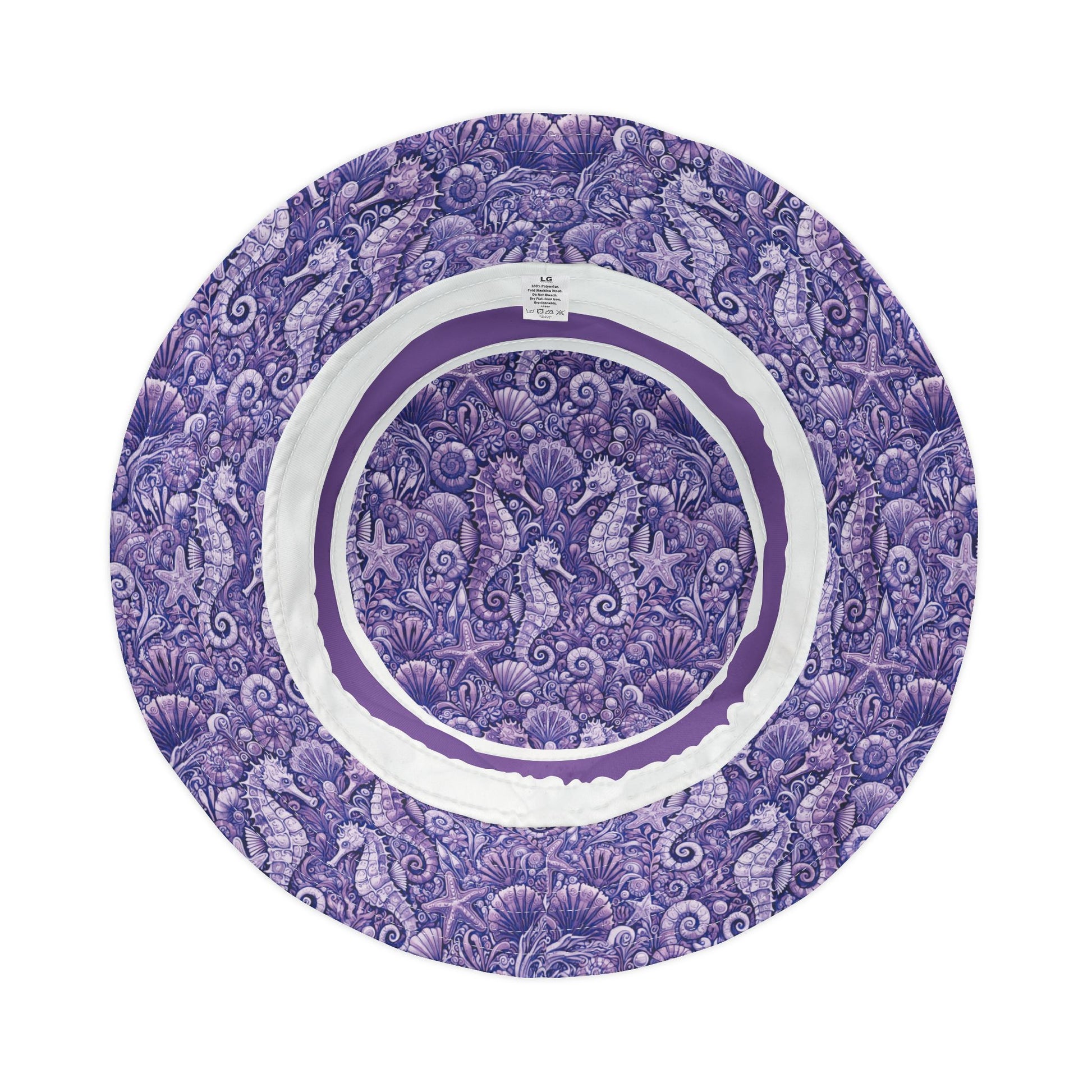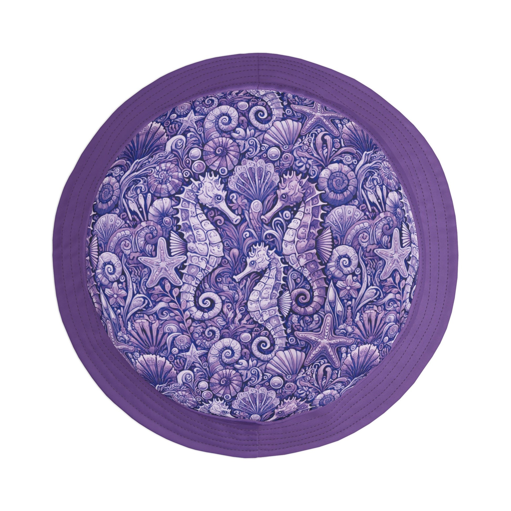 Tropical Polyester Bucket Hat, 2 Sizes - Seahorses Amethyst/Lt. Purple