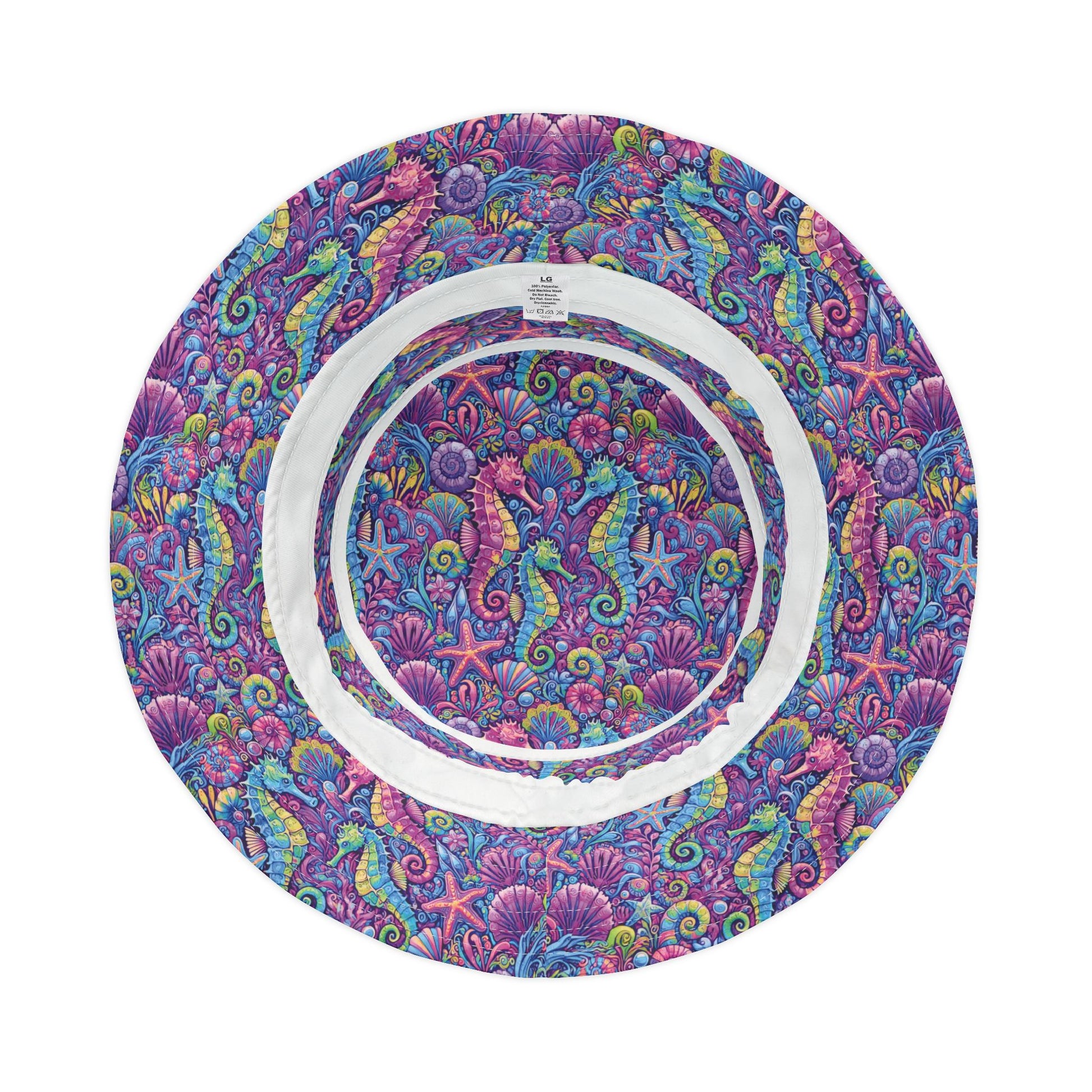 Tropical Polyester Bucket Hat, 2 Sizes - Seahorses Fantasy Pop