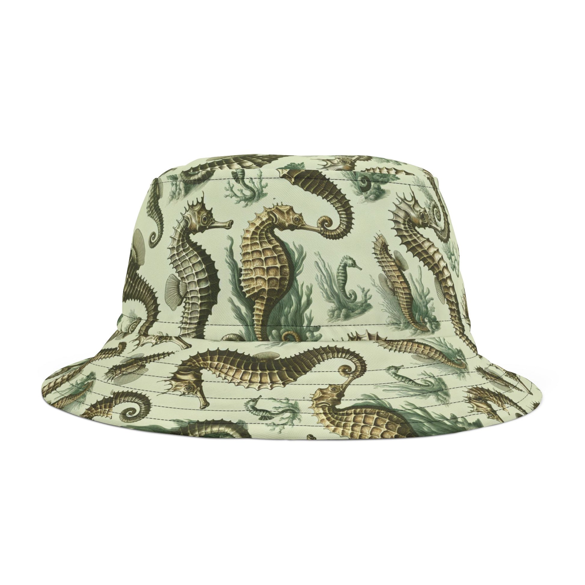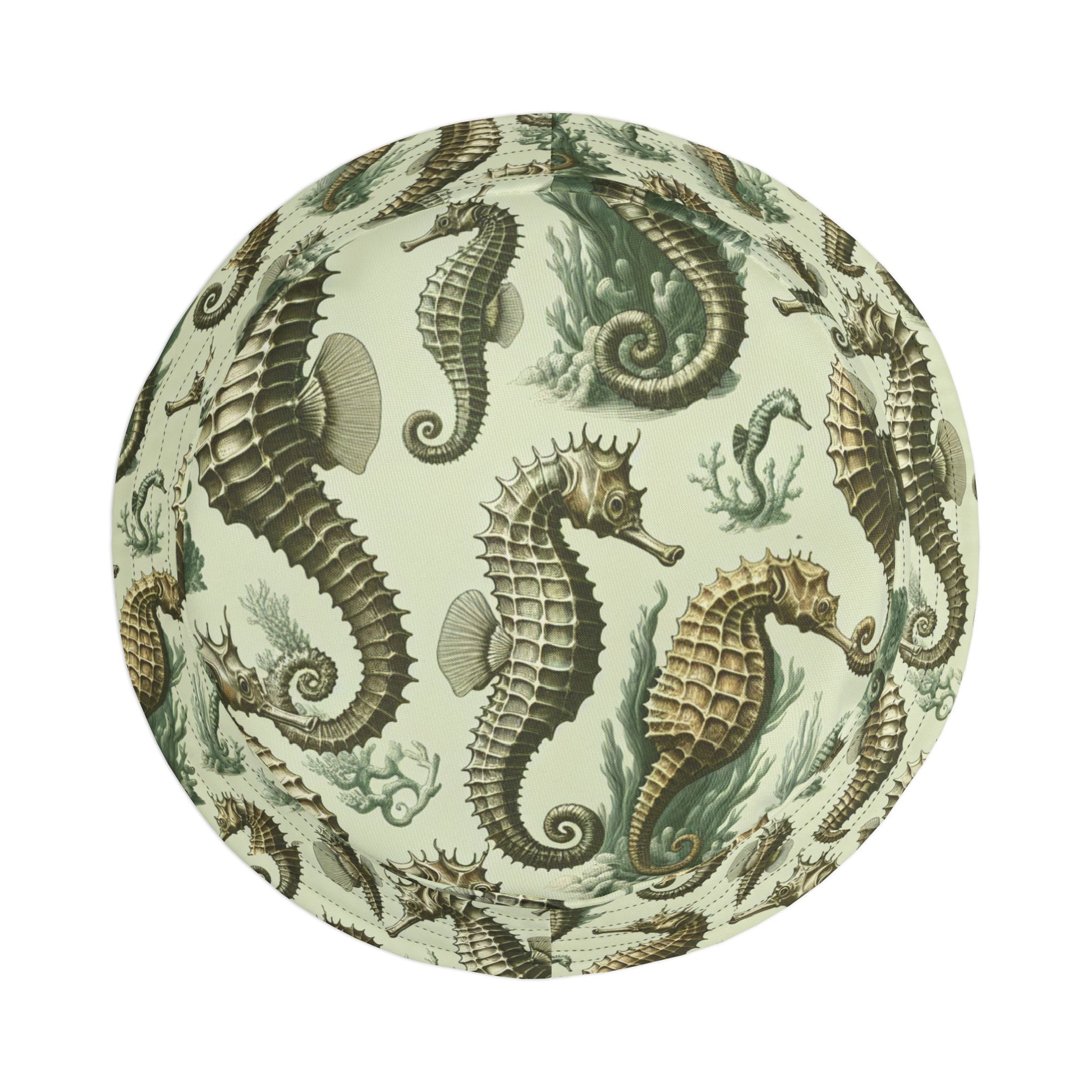Tropical Polyester Bucket Hat, 2 Sizes - Green Toile Seahorses