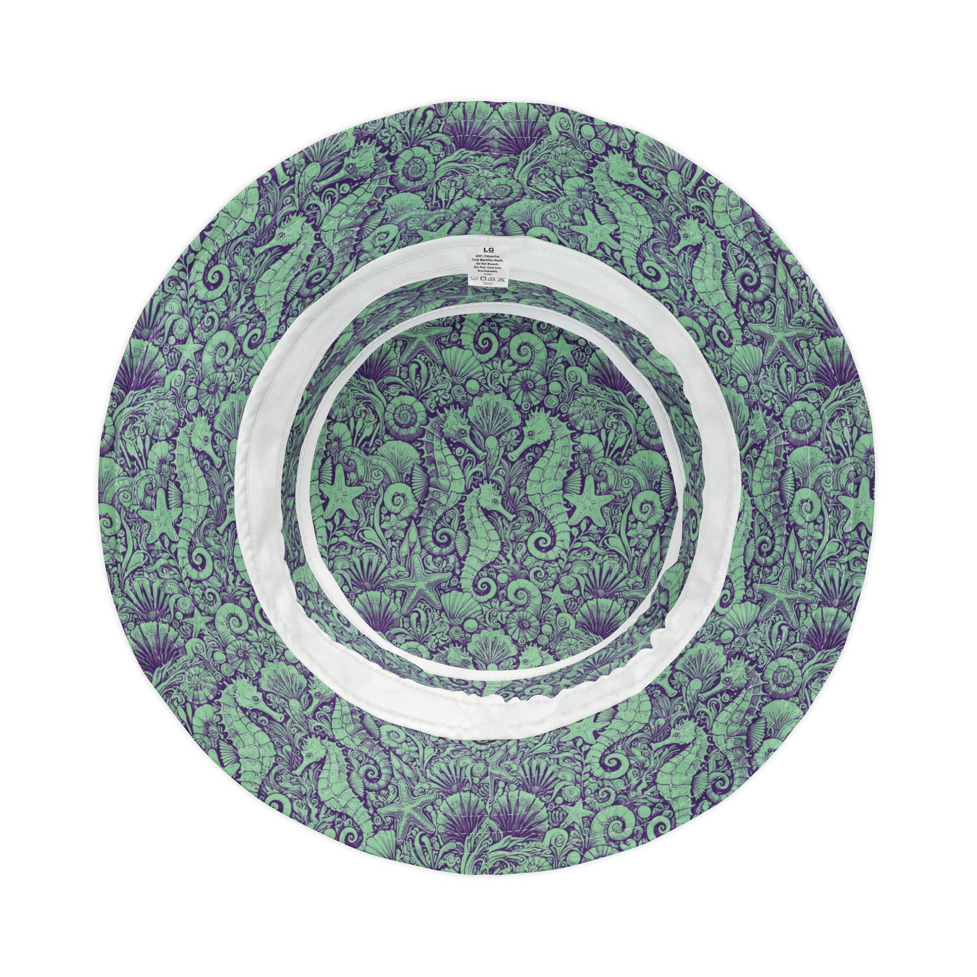 Tropical Polyester Bucket Hat, 2 Sizes - Seahorses Minty