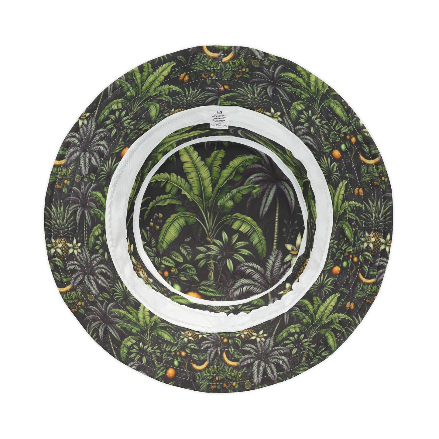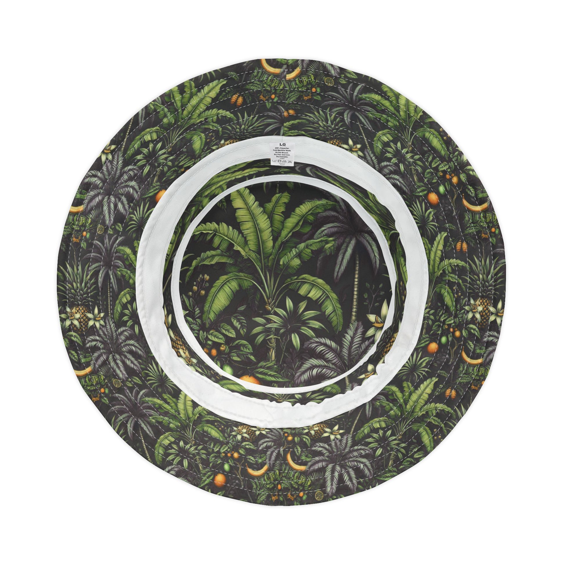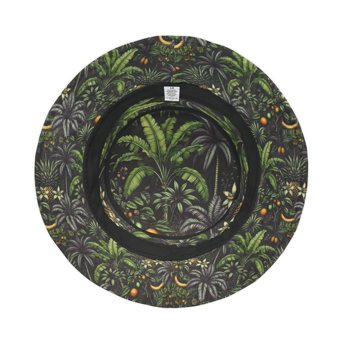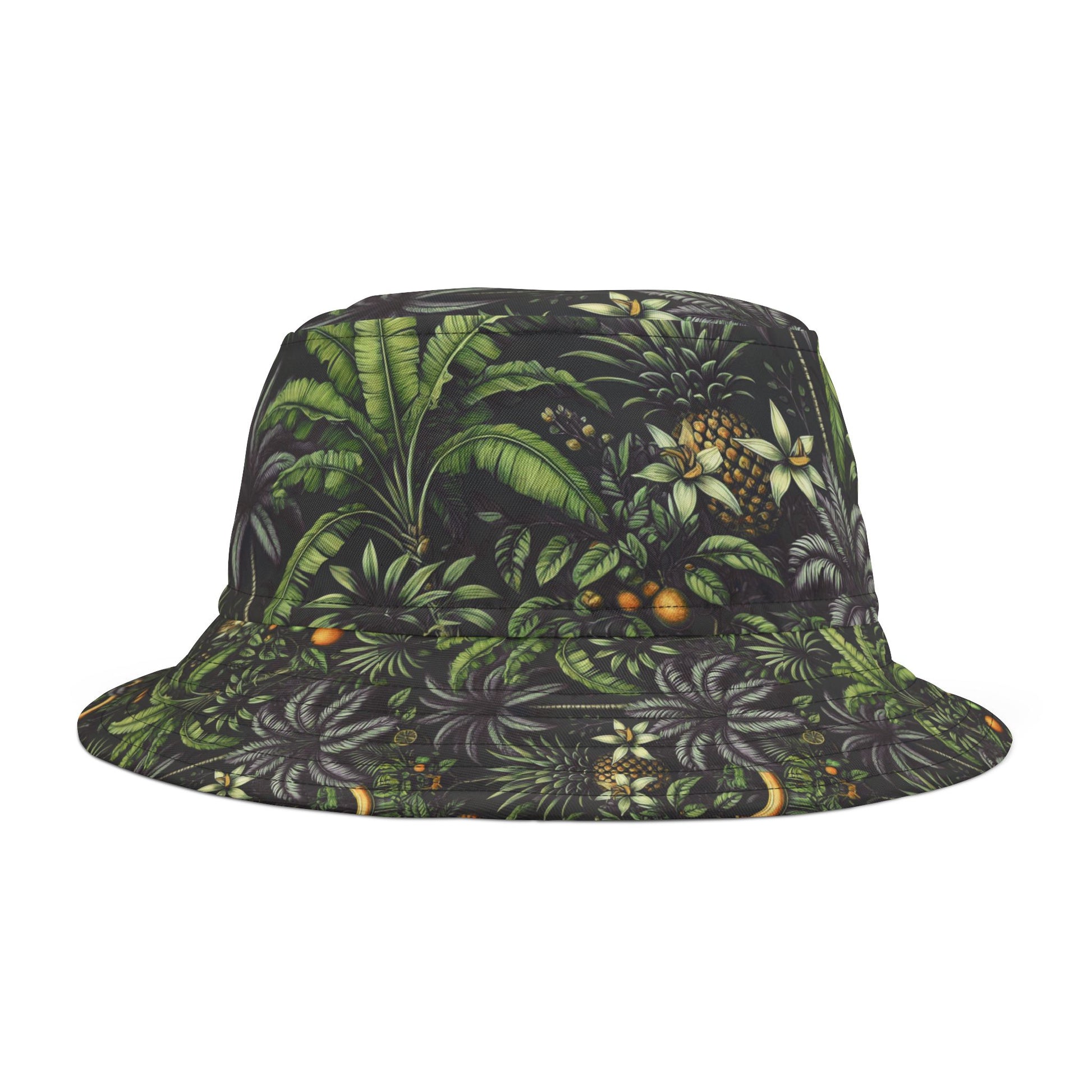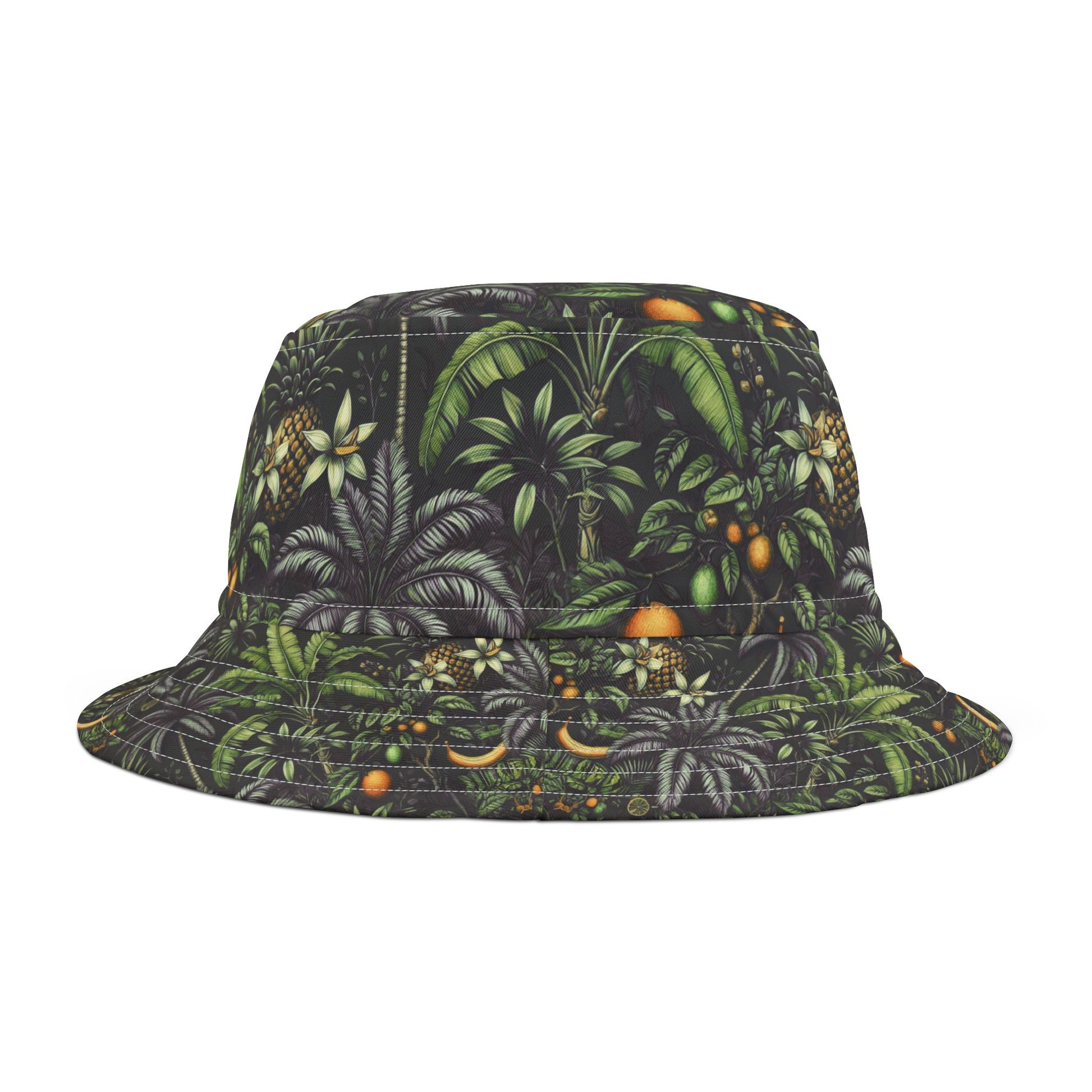 Tropical Polyester Bucket Hat, 2 Sizes - Tropical Fruit, Black