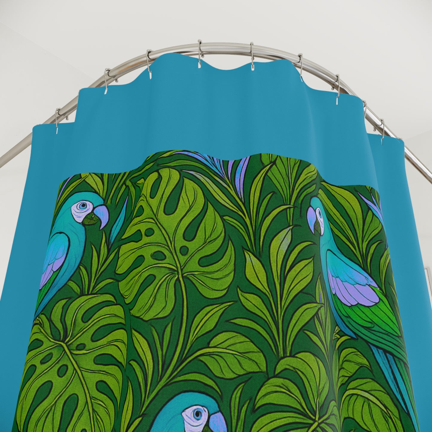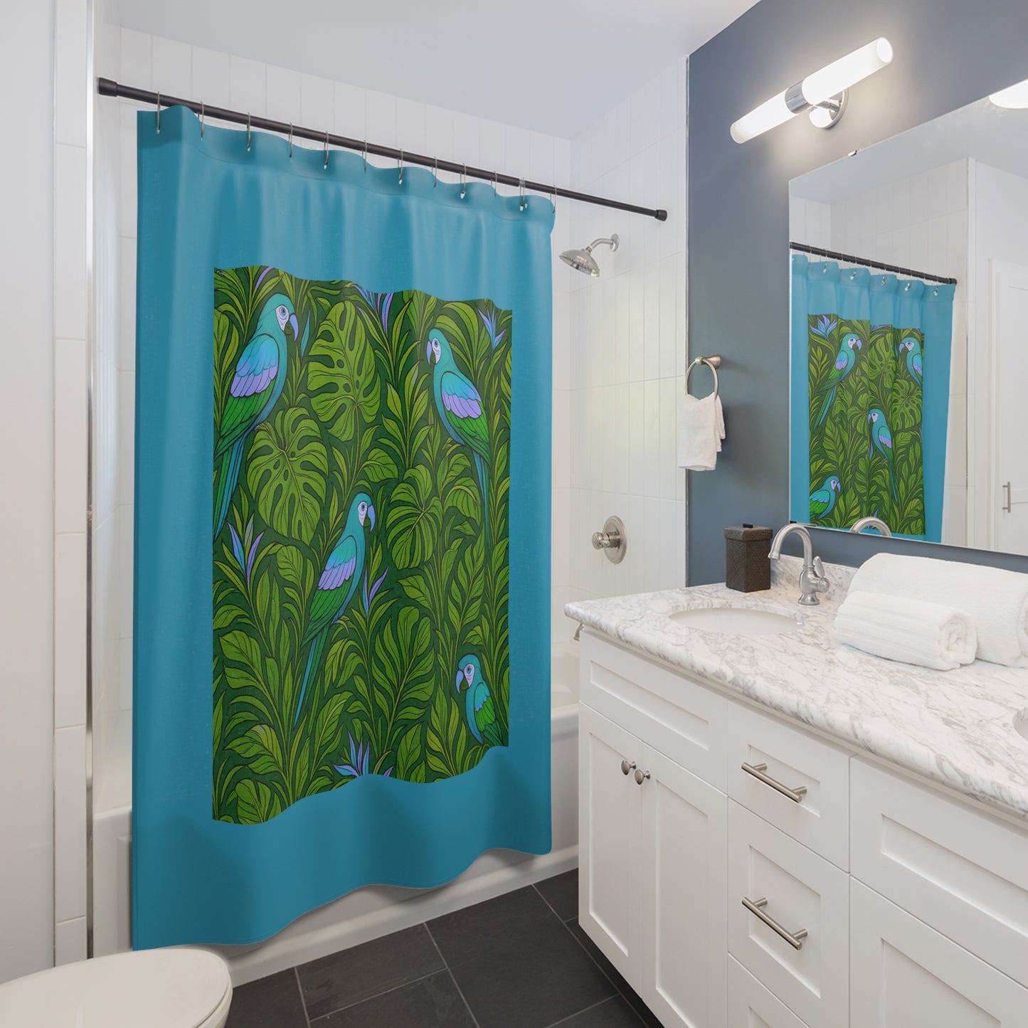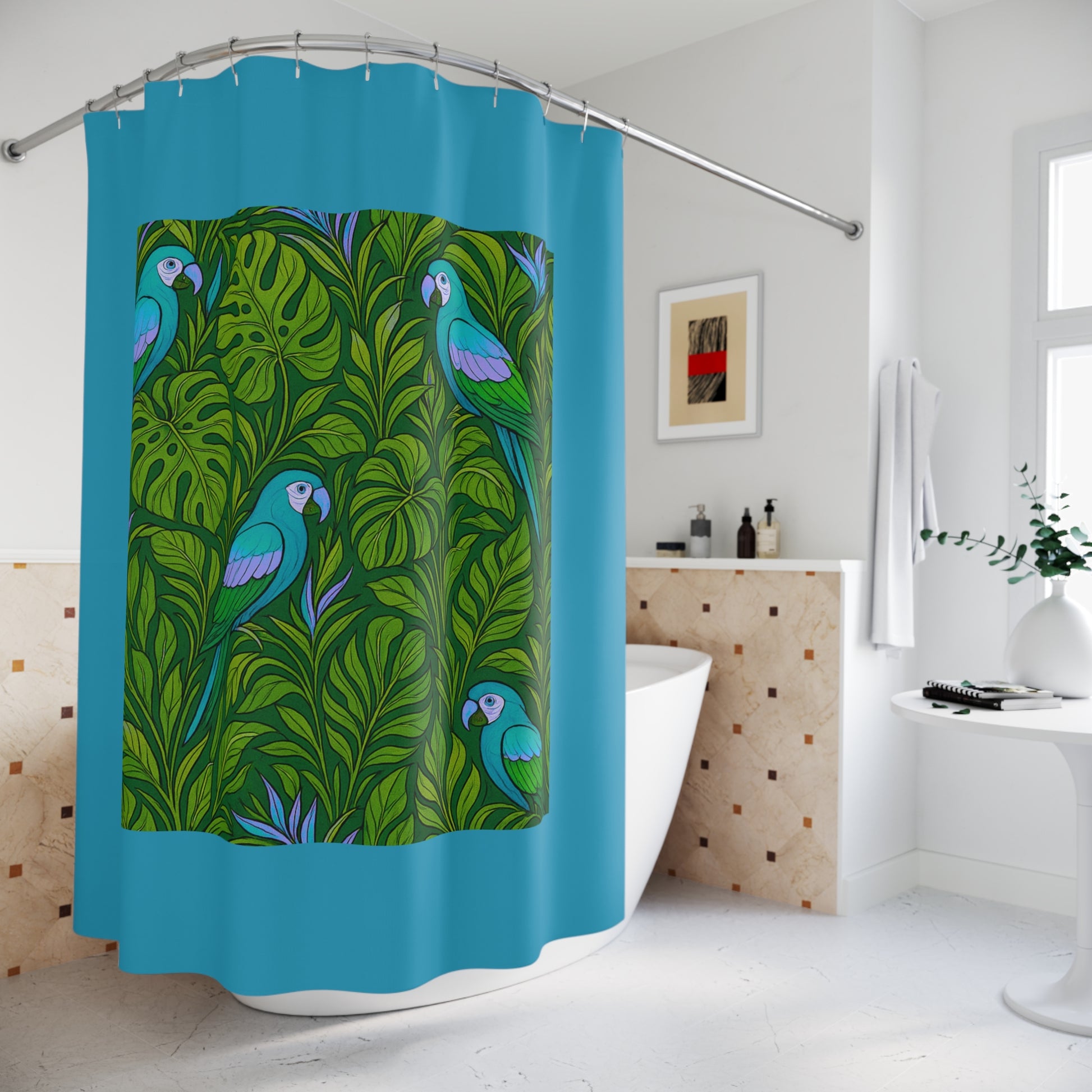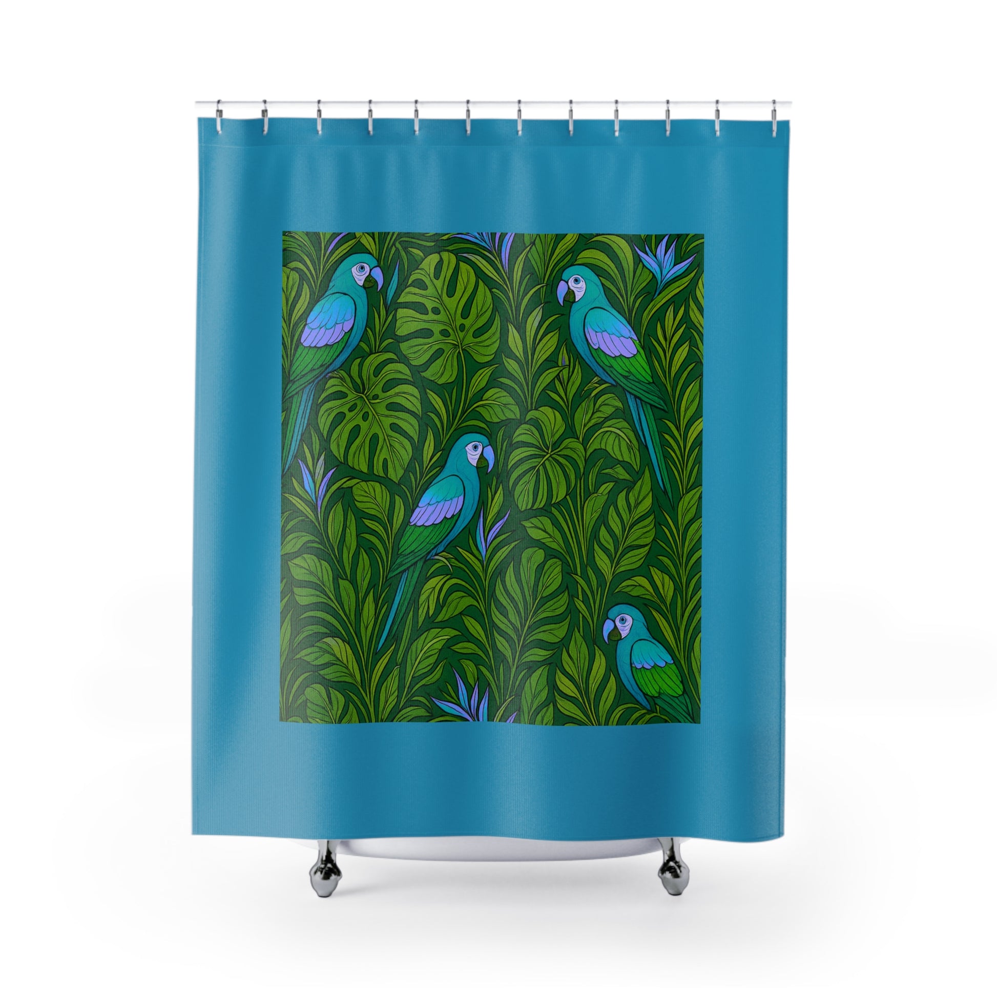 Tropical Shower Curtain - Ocean Bathroom Decor / Parrot Family/Blue, Turquoise