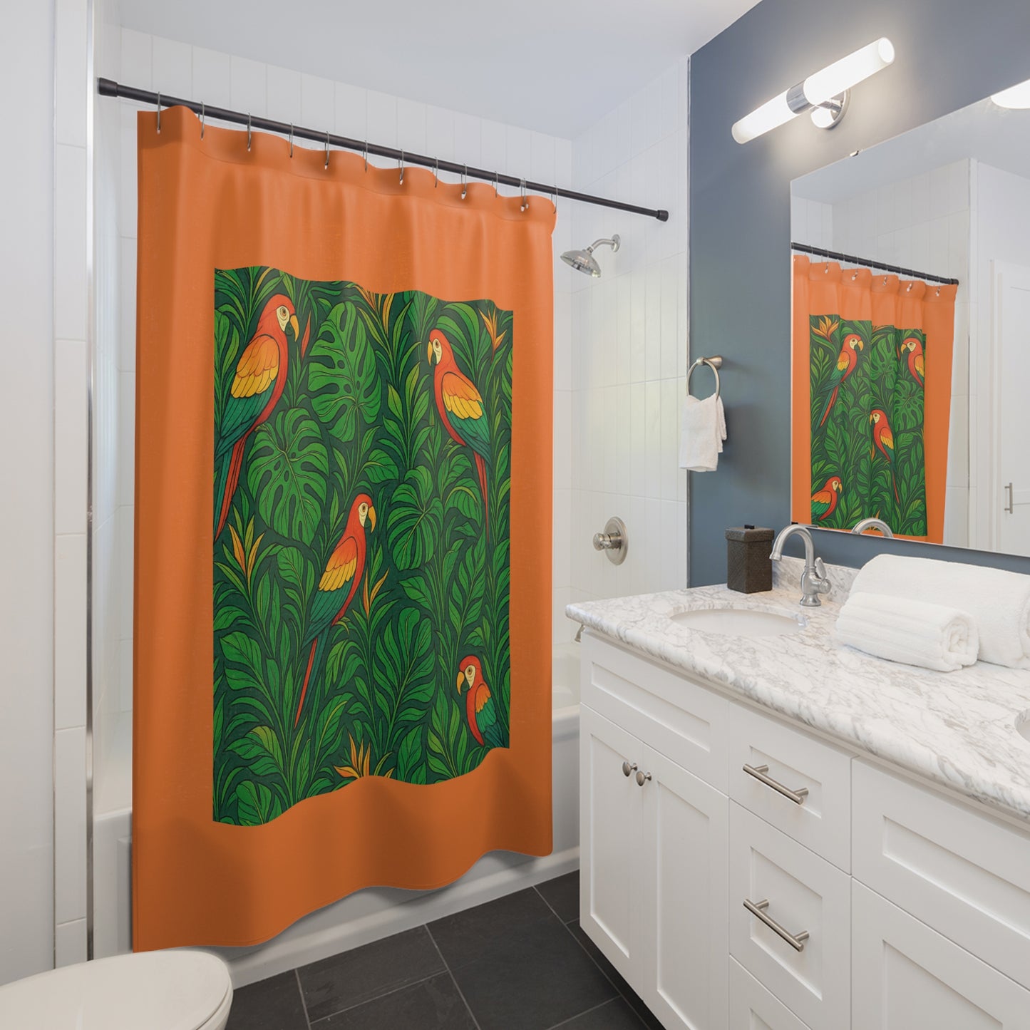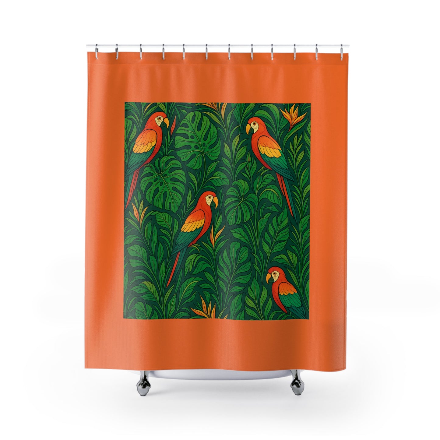 Tropical Shower Curtain - Ocean Bathroom Decor / Parrot Family, Crusta Lt. Orange