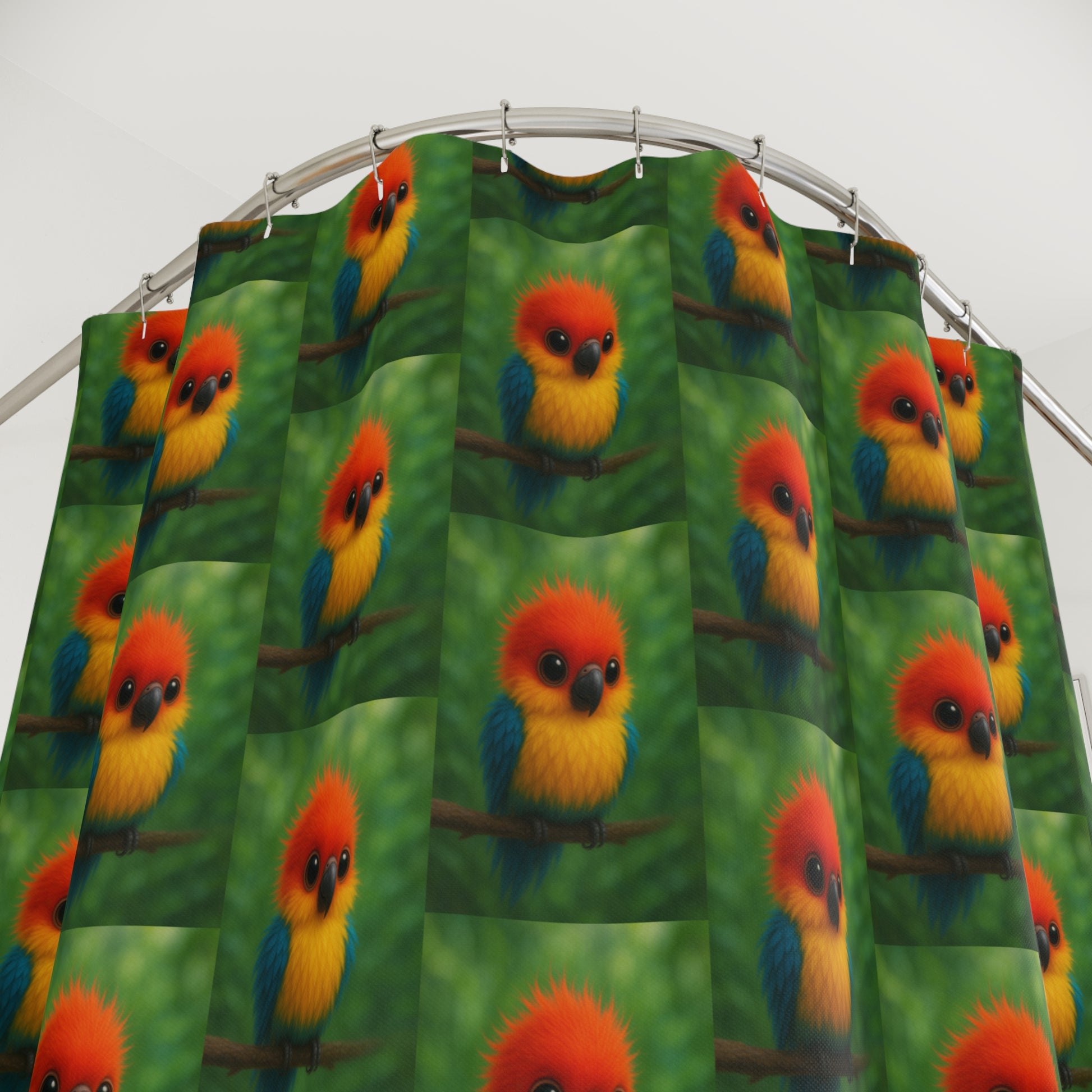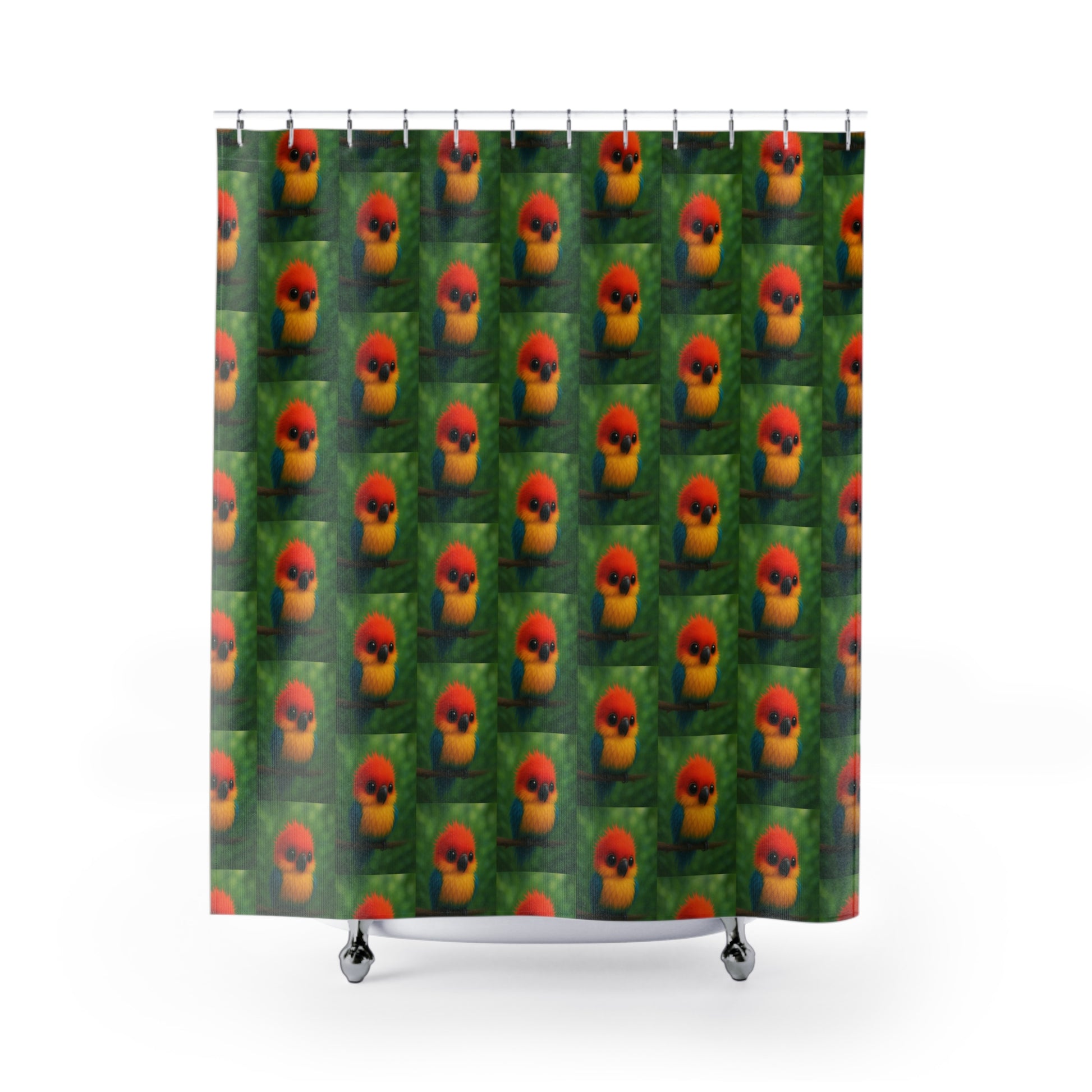 Transform your bathroom into a serene oasis with this vibrant shower curtain featuring baby parrots in a rainforest. Made from 100% durable polyester, this unique design features a captivating blend of colors and patterns that will invigorate your space. Imagine stepping into a warm, relaxing shower surrounded by stylish artistry that reflects your personality. Perfect for adults looking to elevate their home decor, this shower curtain brings a touch of creativity and fun to everyday routines. It's ideal for housewarming gifts, celebrations, or simply as a cheerful addition to your own bathroom. Celebrate life’s moments, from seasonal gatherings to personal milestones, with this eye-catching piece.