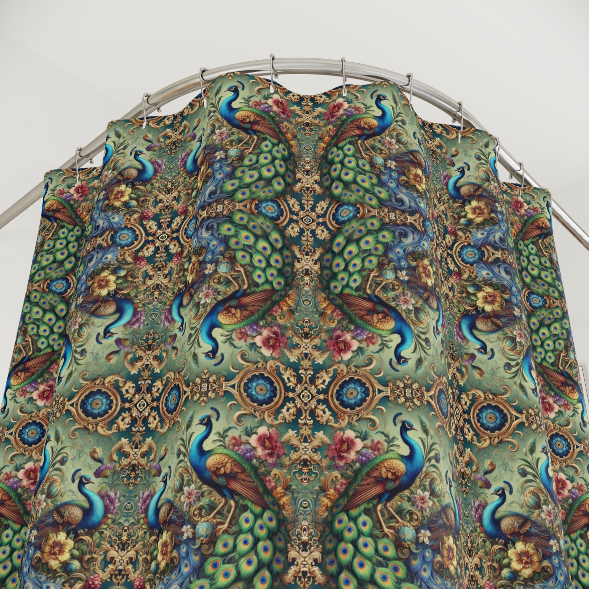 Transform your bathroom into a serene oasis with this vibrant shower curtain featuring kaleidoscope design of lovely peacocks in the rainforest. Made from 100% durable polyester, this unique design features a captivating blend of colors and patterns that will invigorate your space. Imagine stepping into a warm, relaxing shower surrounded by stylish artistry that reflects your personality. Perfect for adults looking to elevate their home decor, this shower curtain brings a touch of creativity and fun to everyday routines. It's ideal for housewarming gifts, celebrations, or simply as a cheerful addition to your own bathroom. Celebrate life’s moments, from seasonal gatherings to personal milestones, with this eye-catching piece.