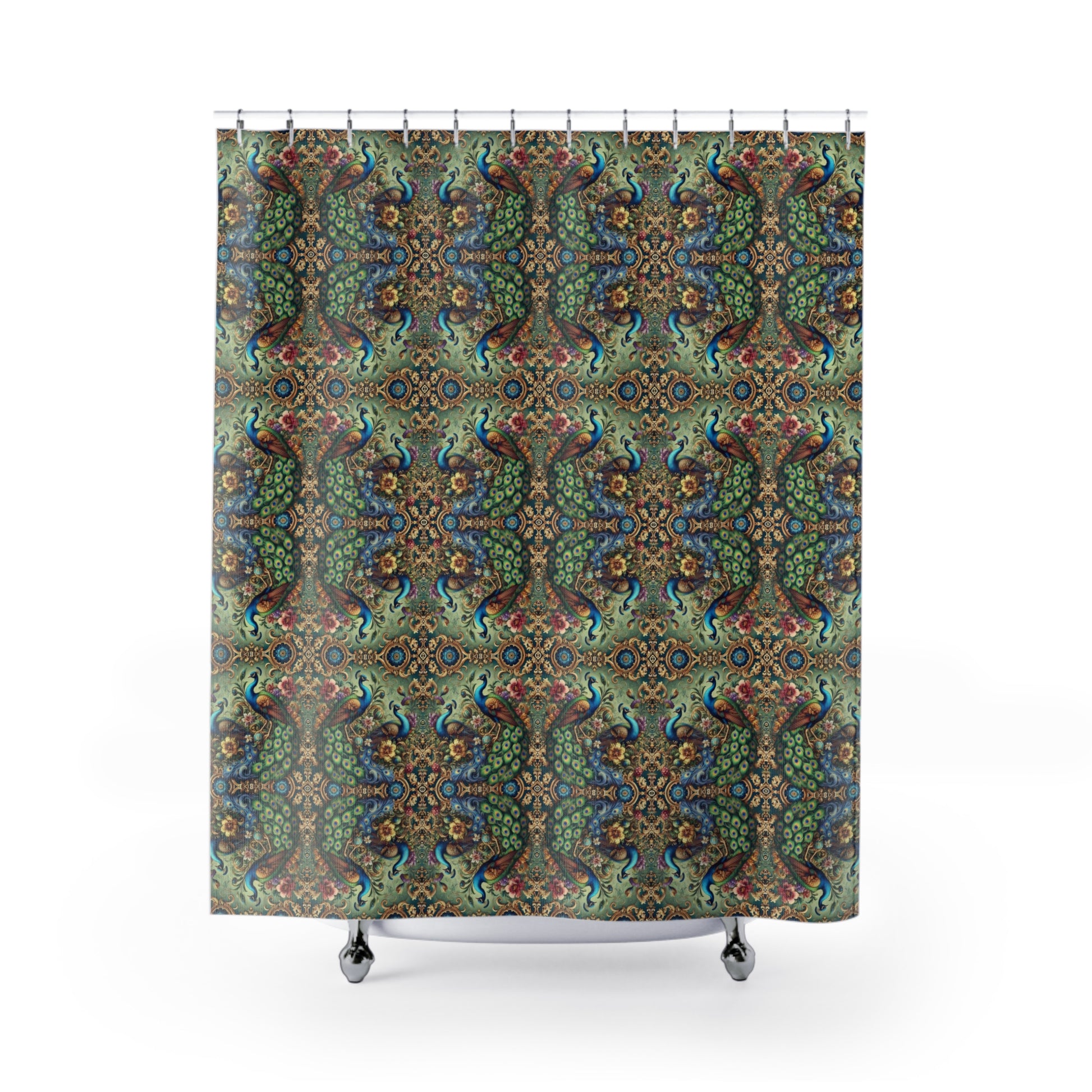 \Tropical Shower Curtain - Rainforest Bathroom Decor / Kaleido Peacock Royals