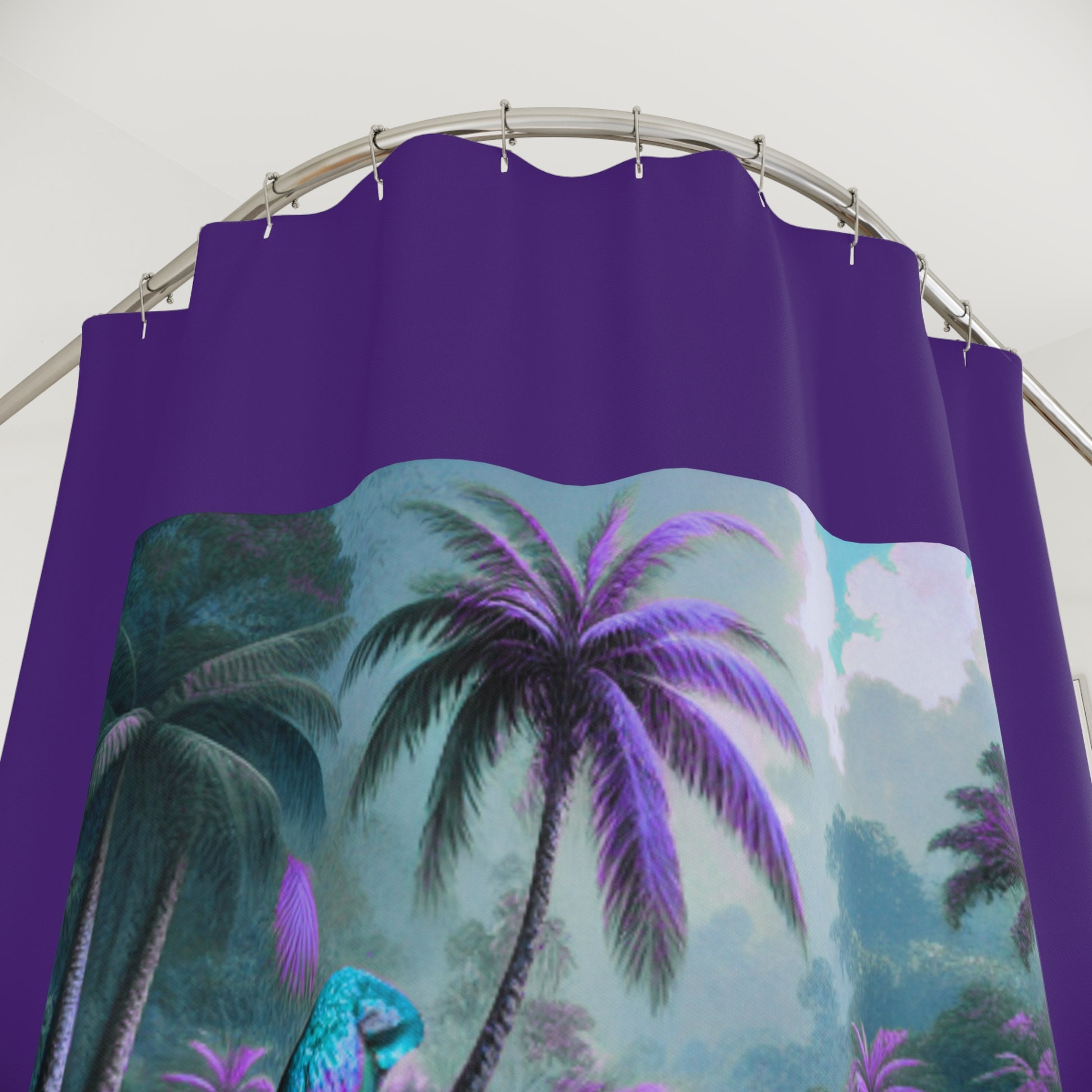Tropical Shower Curtain - Rainforest Bathroom Decor / Sleeping Beauty Parrot Fantasy, Purple
