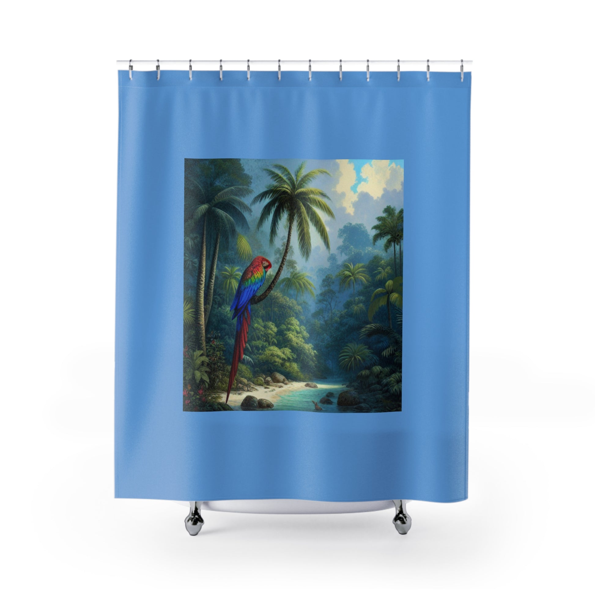 Tropical Shower Curtain - Rainforest Bathroom Decor / Sleeping Beauty Parrot, Lt. Blue